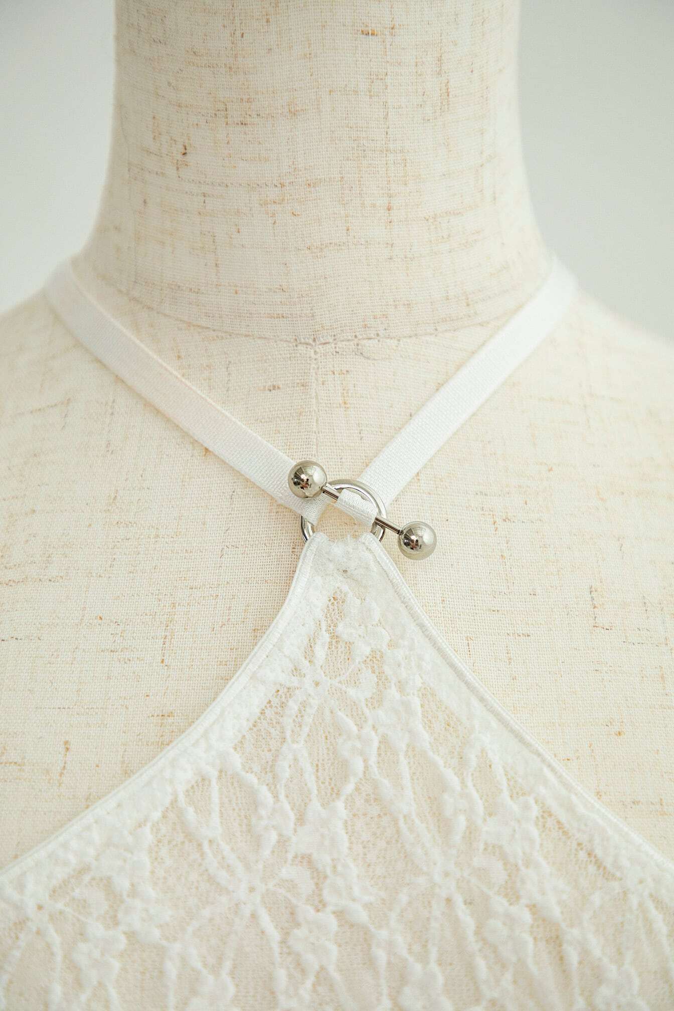 胸元には、ボディピアスタイプの金具使いで、GEMINItaleらしい遊び心をプラス。