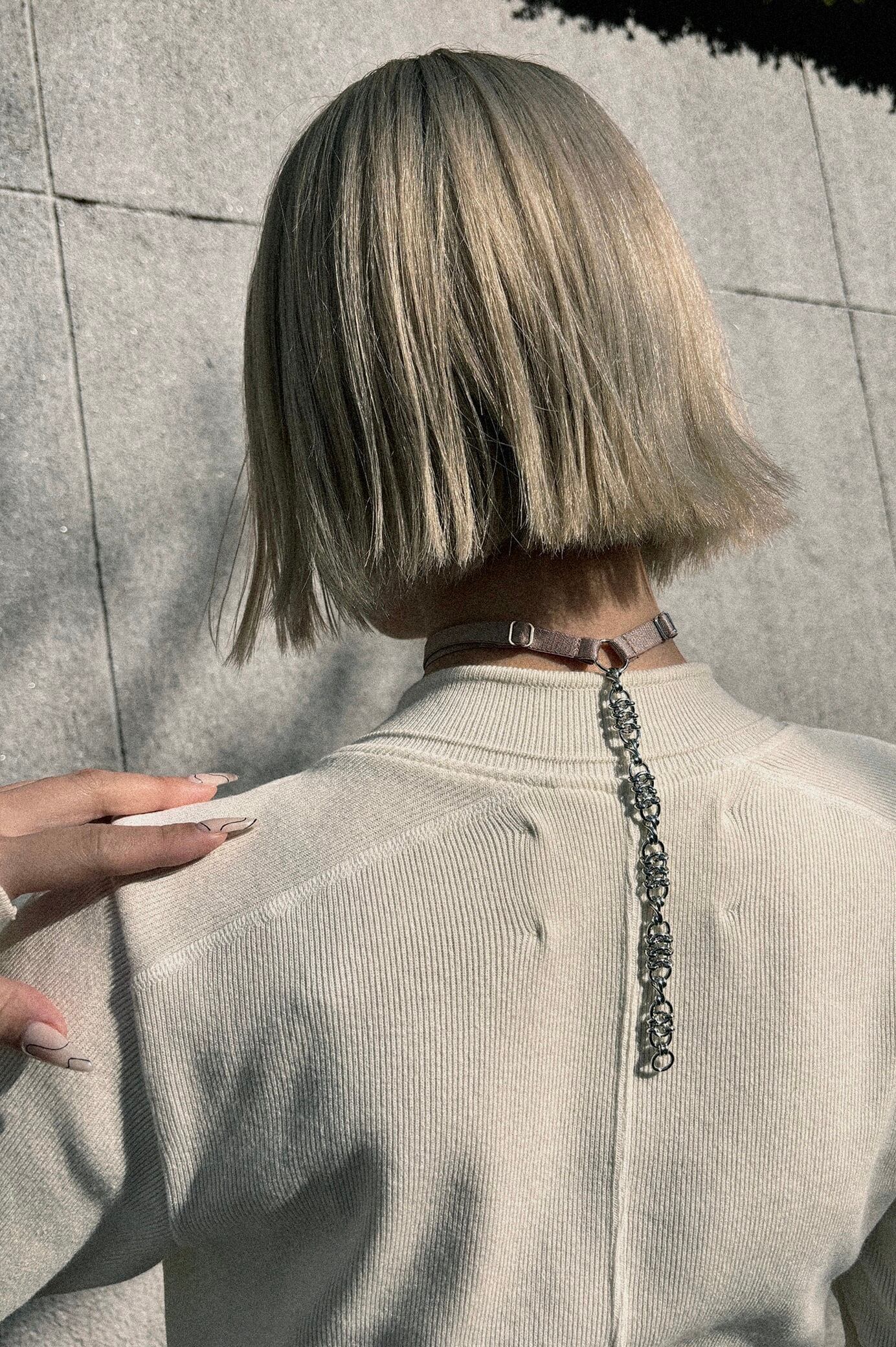 ベーシックなハーネススタイルに、存在感あるチェーンを組み合わせたアクセサリー。