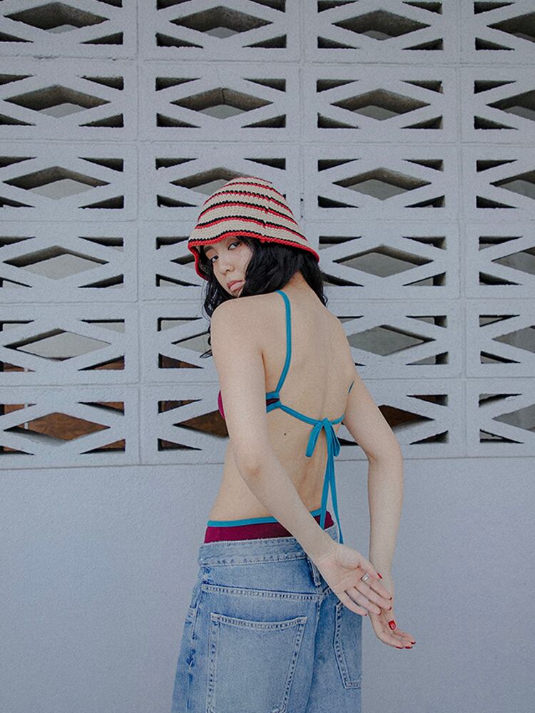首元のクロスデザインが華奢な見た目とは裏腹にしっかりとした着心地です。