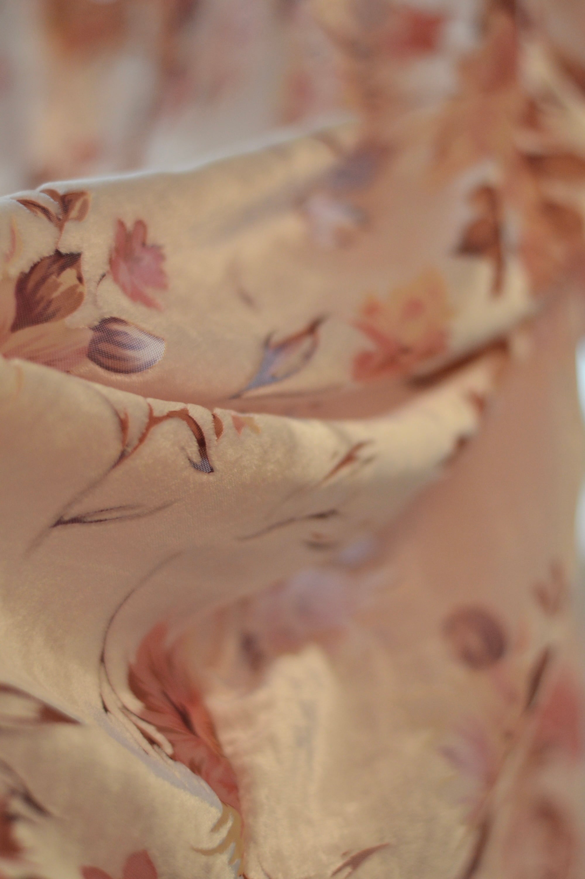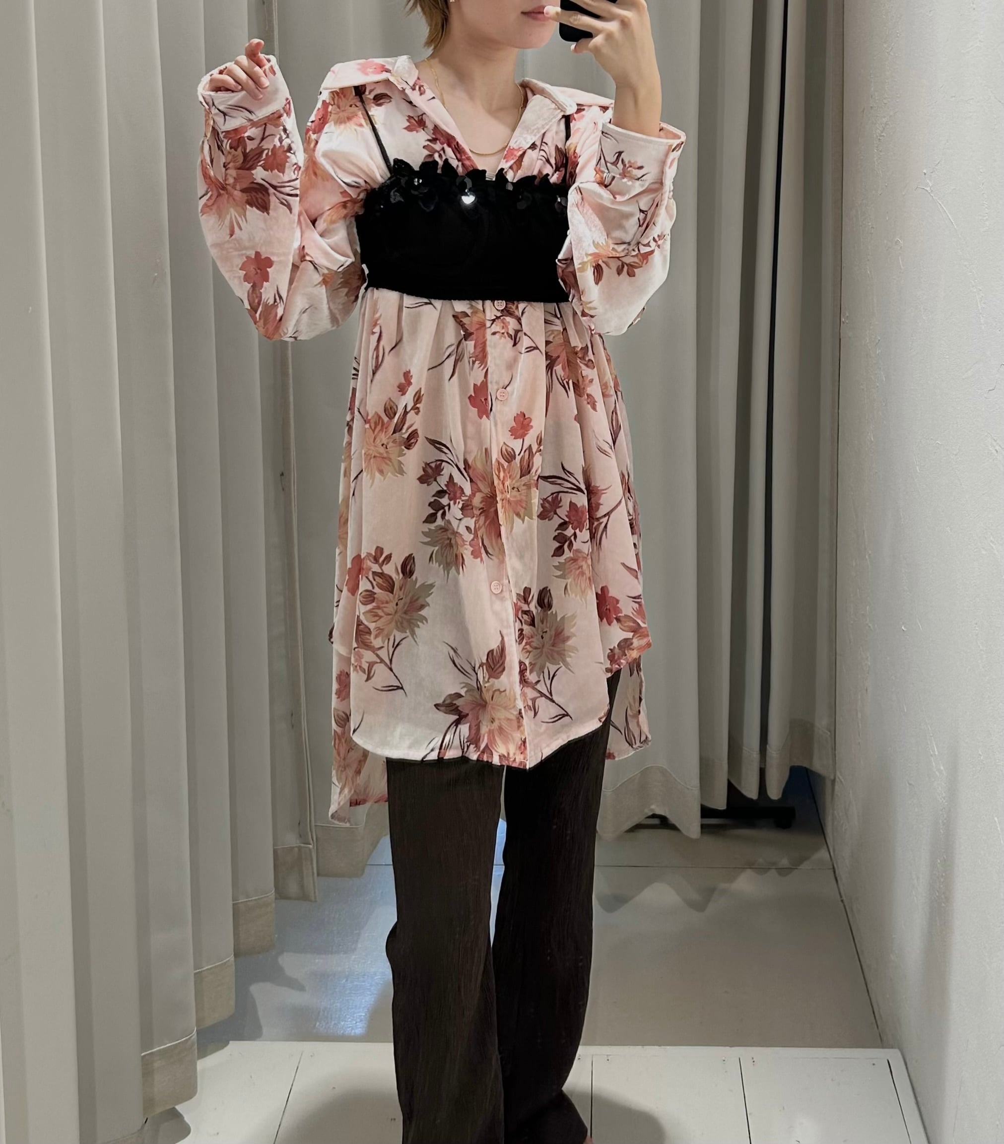 上品な光沢や透け感が特徴で、柄部分がシアー素材、ベロア部分は毛並みの方向、角度によって表情の変化を楽しめます。