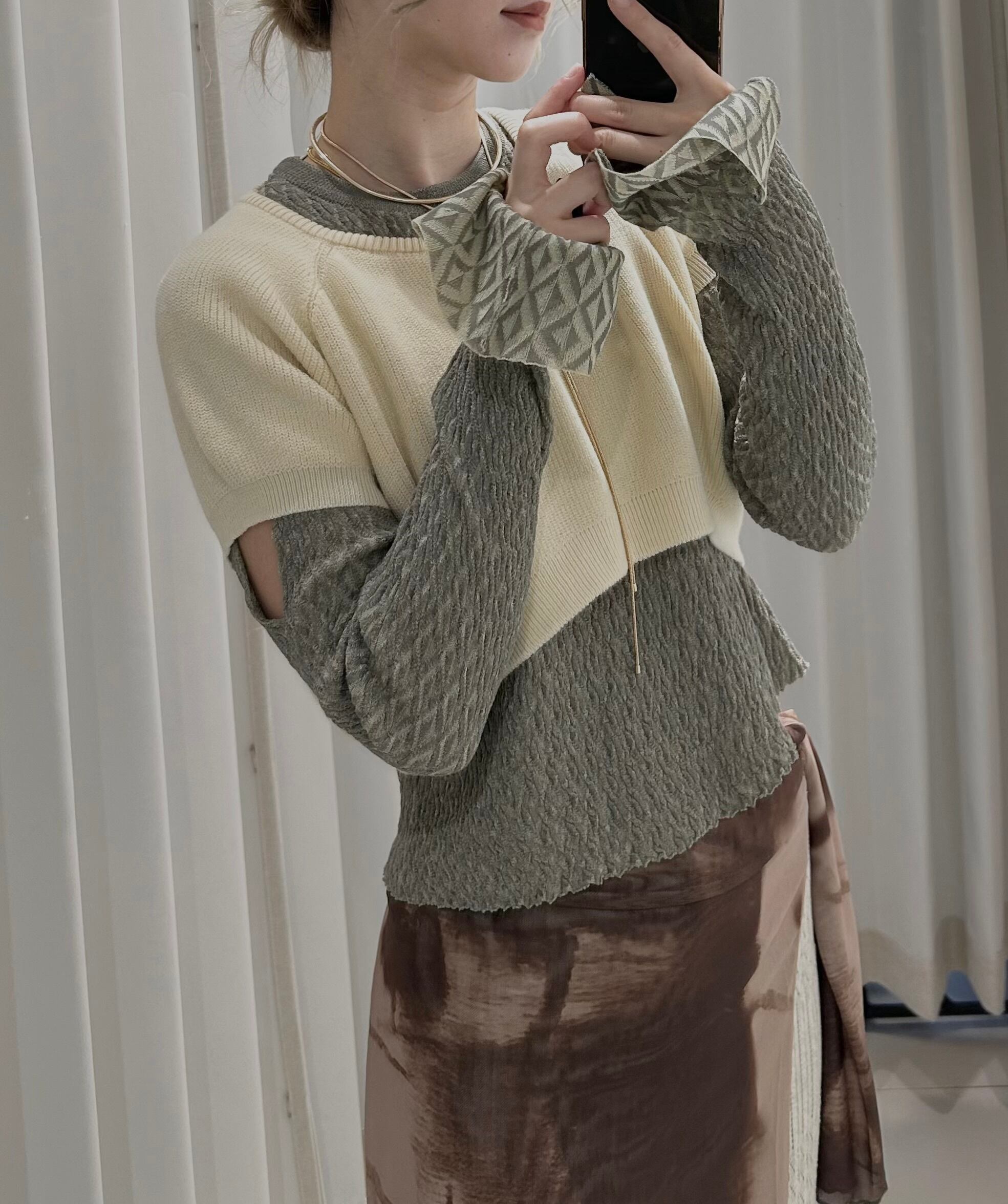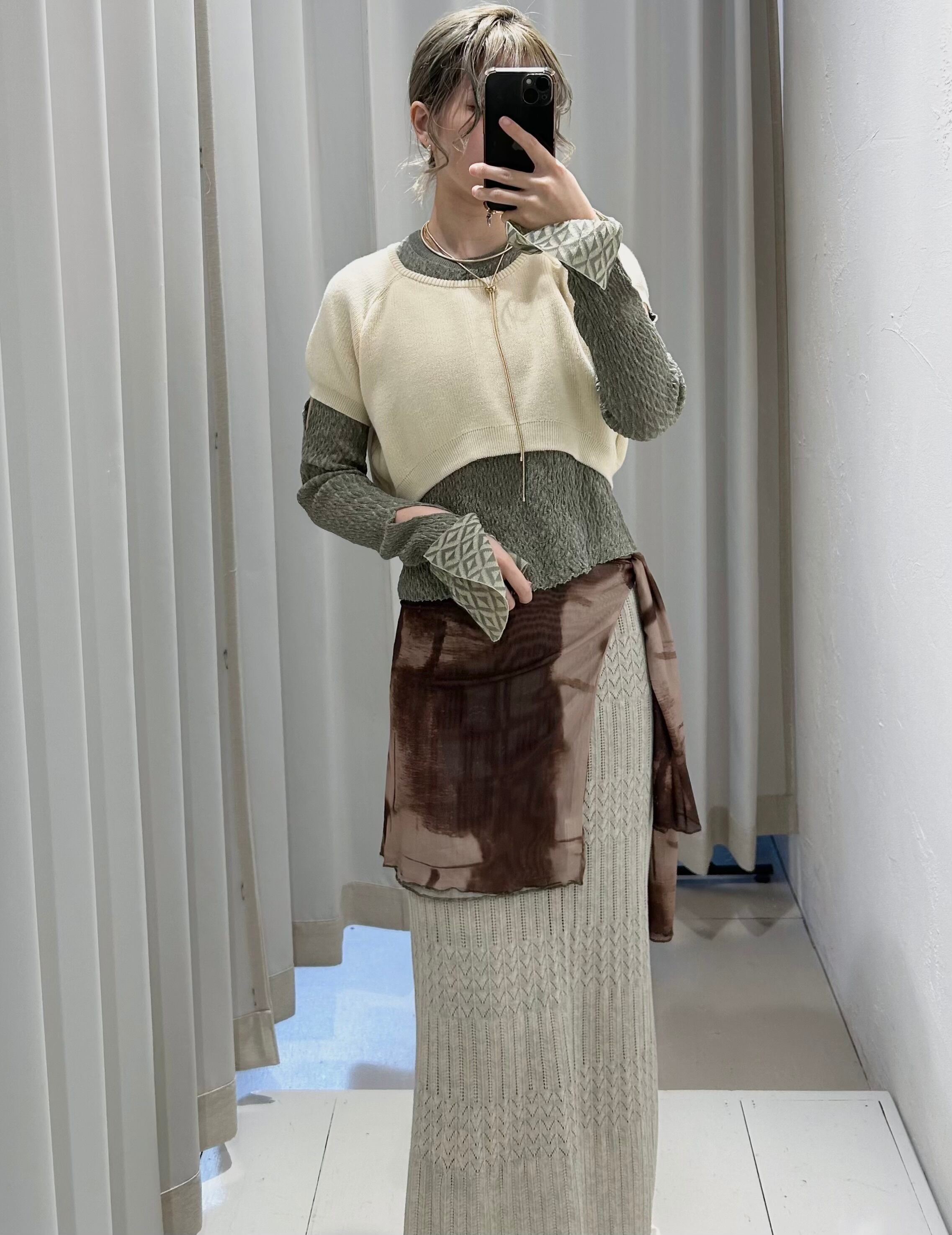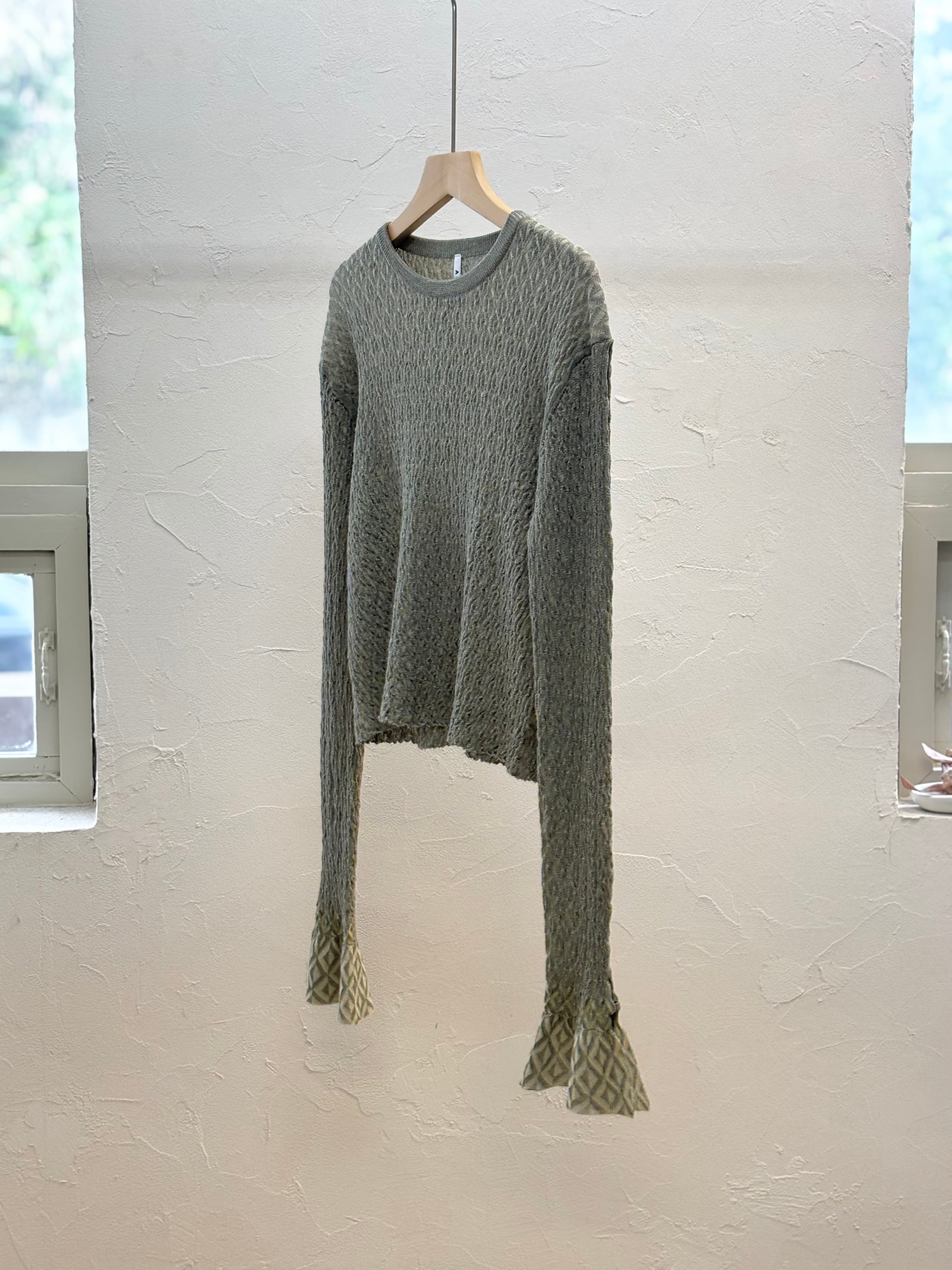 Links Pattern Sleeve Slit Pullover / GRAY×YELLOW