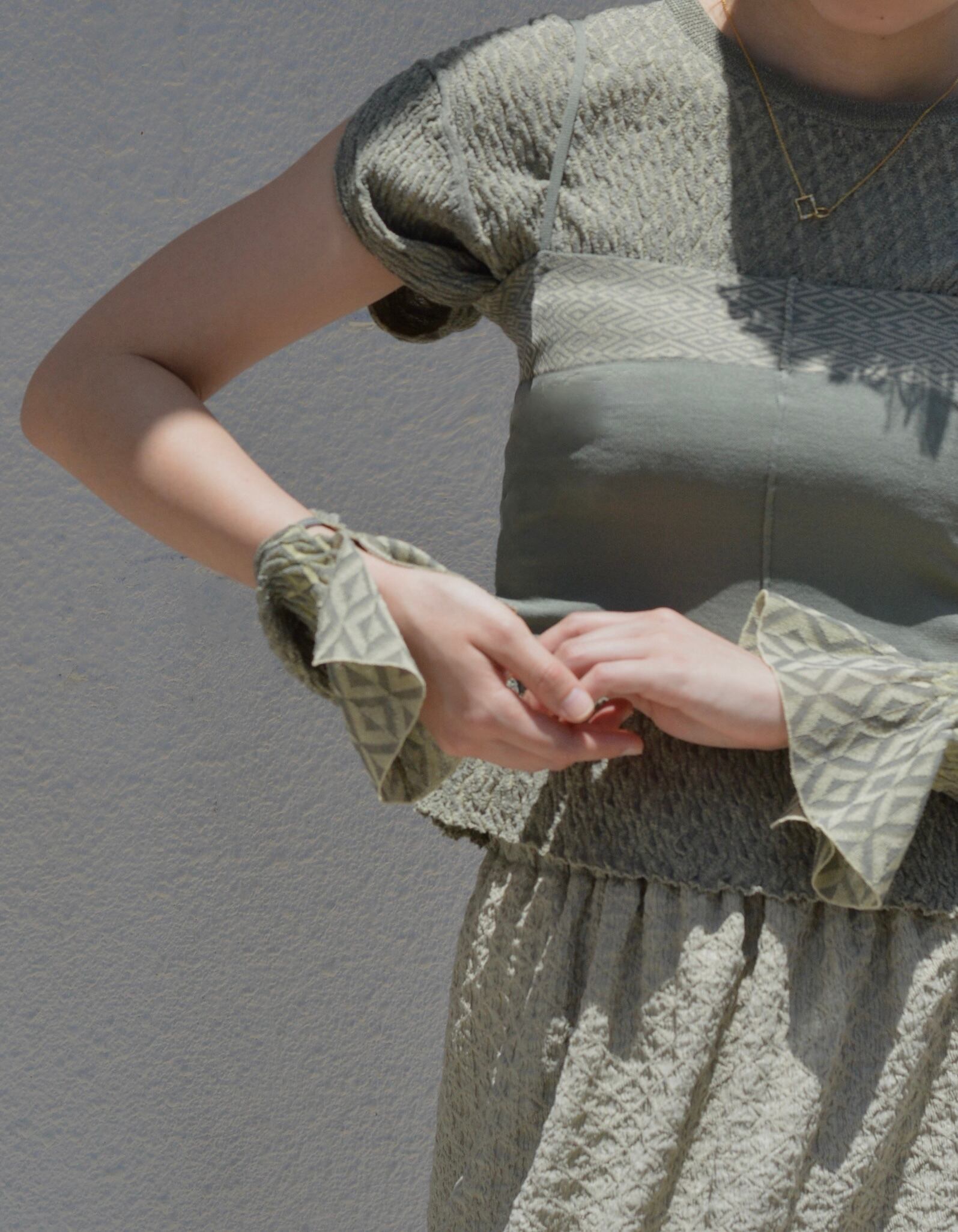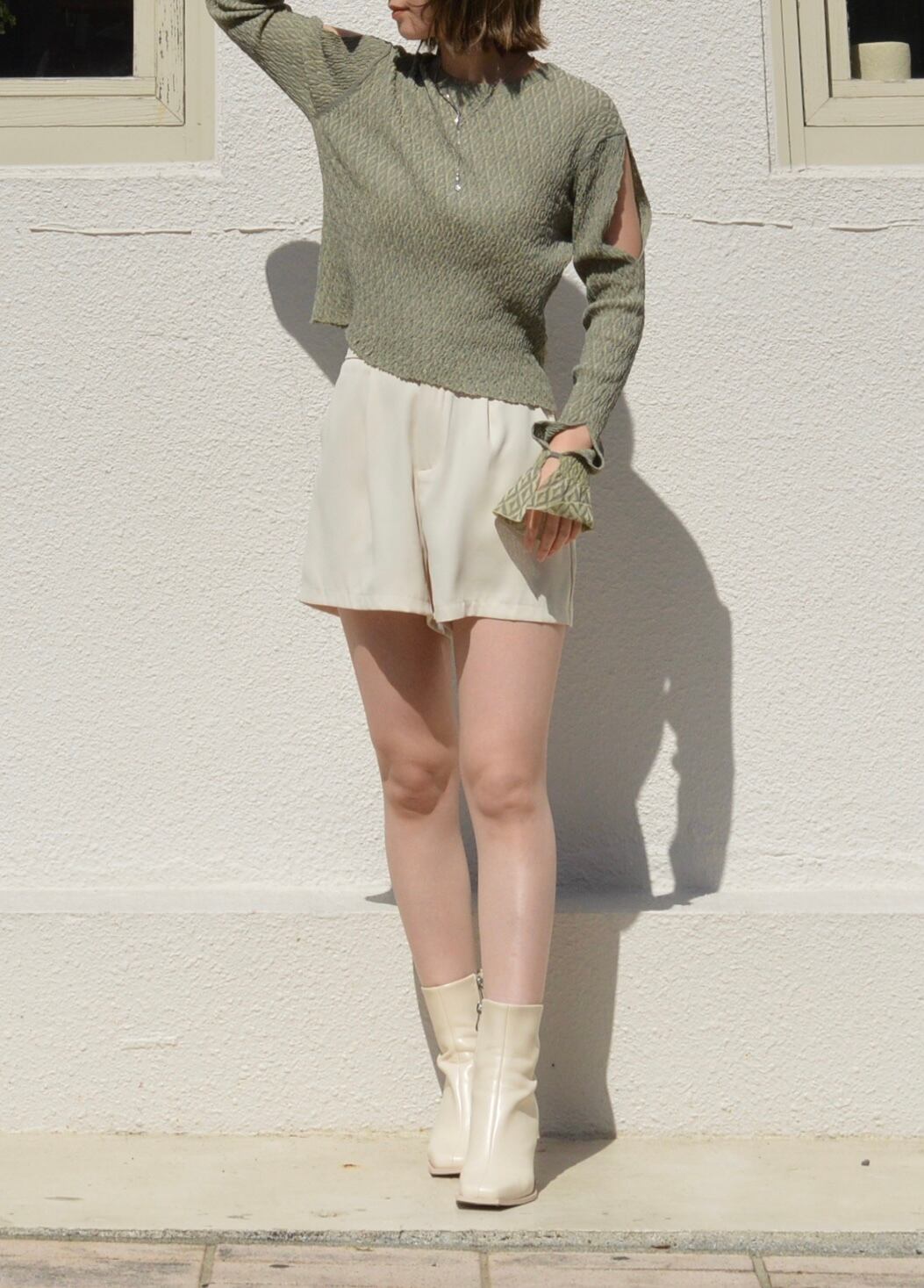 袖口のフレアと、袖上下2箇所に入ったスリットで程よい肌見せがポイントのプルオーバー。