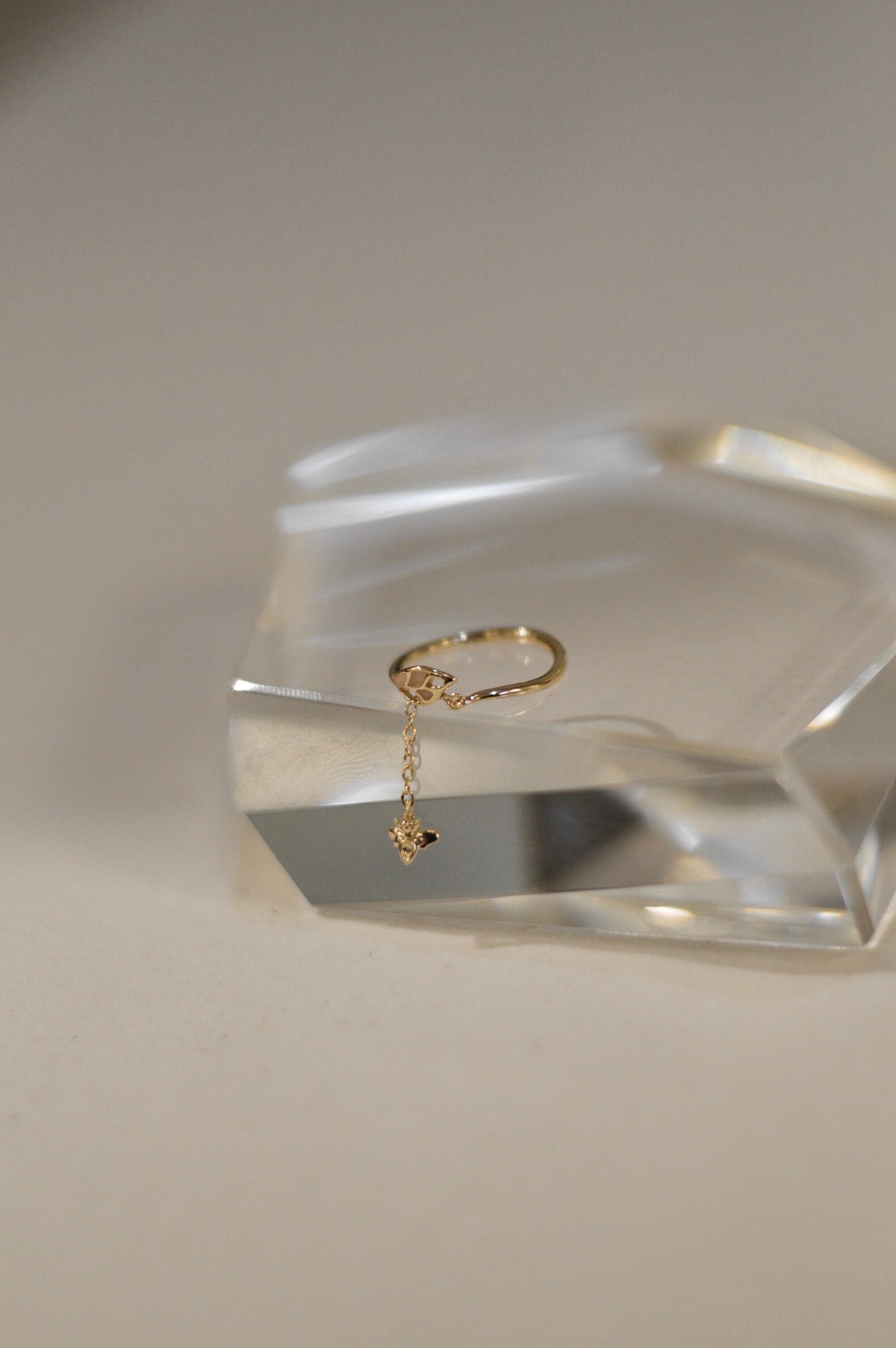 Leaf Stone Plus Chain Butterfly Ring / GOLD