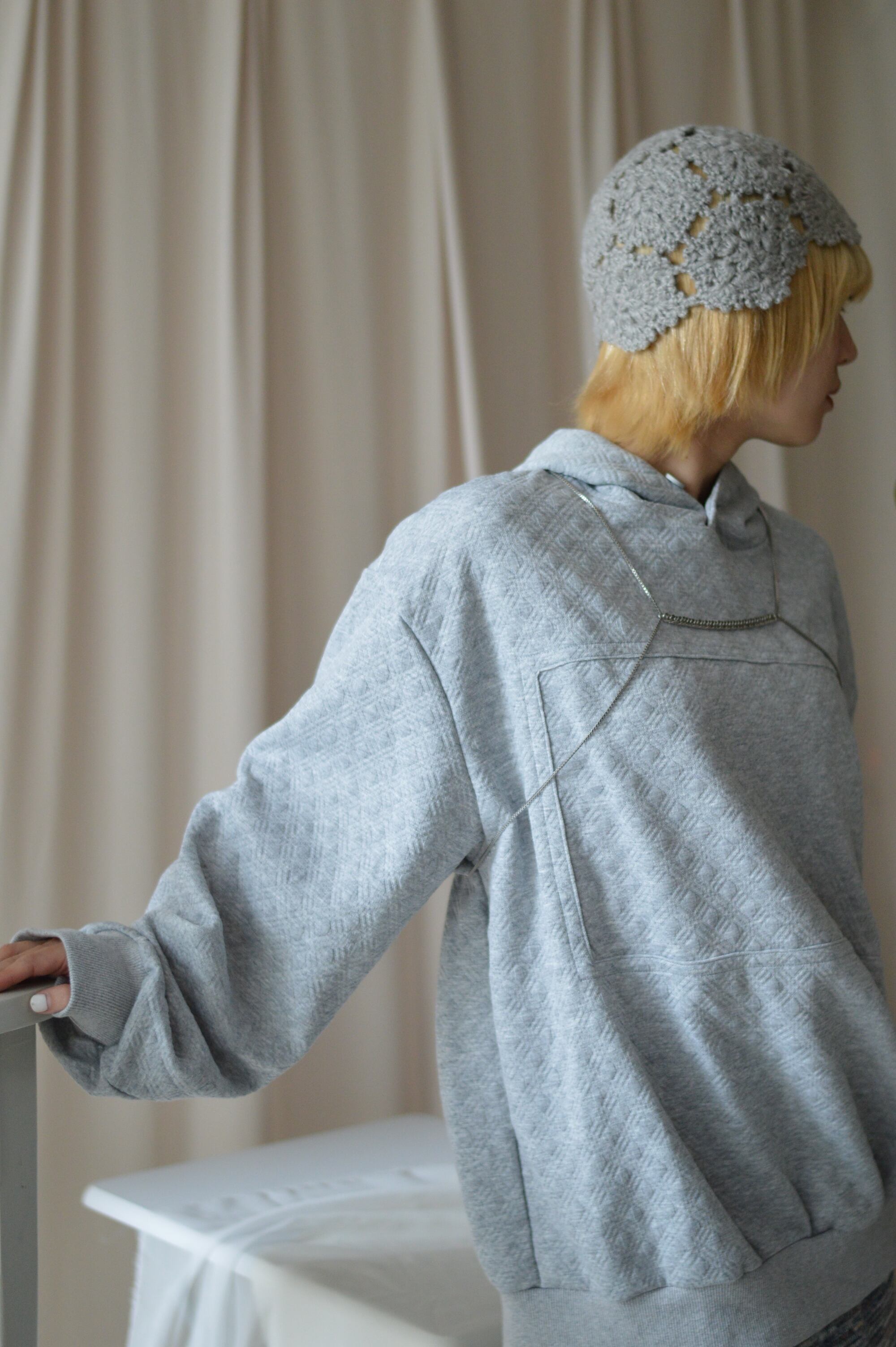 ポロシャツのボタンを取り入れたスウェットパーカー。