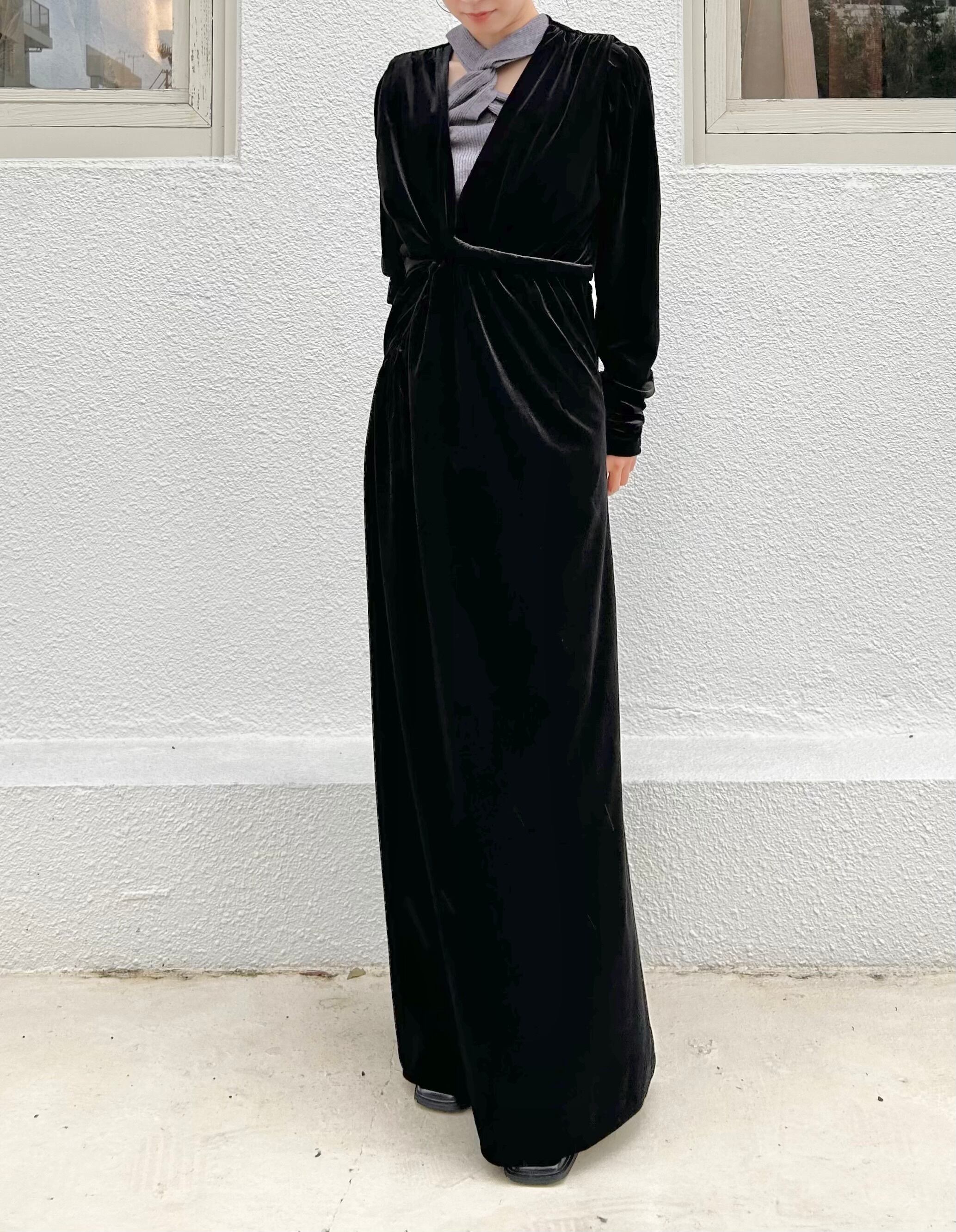 深めのネック部分は、シアーやレーストップスとあわせたり、ニットとあわせたスタイルもおすすめです。