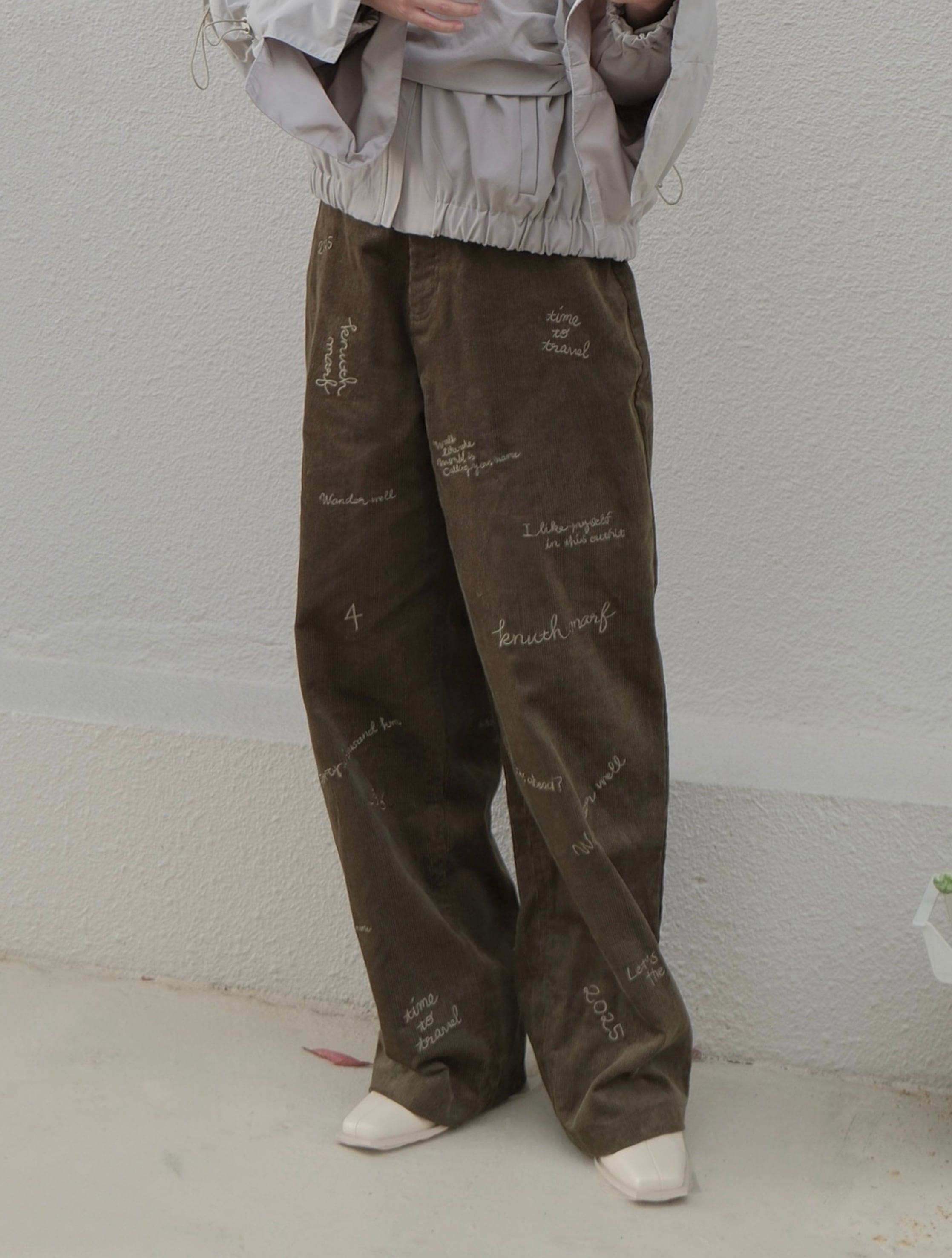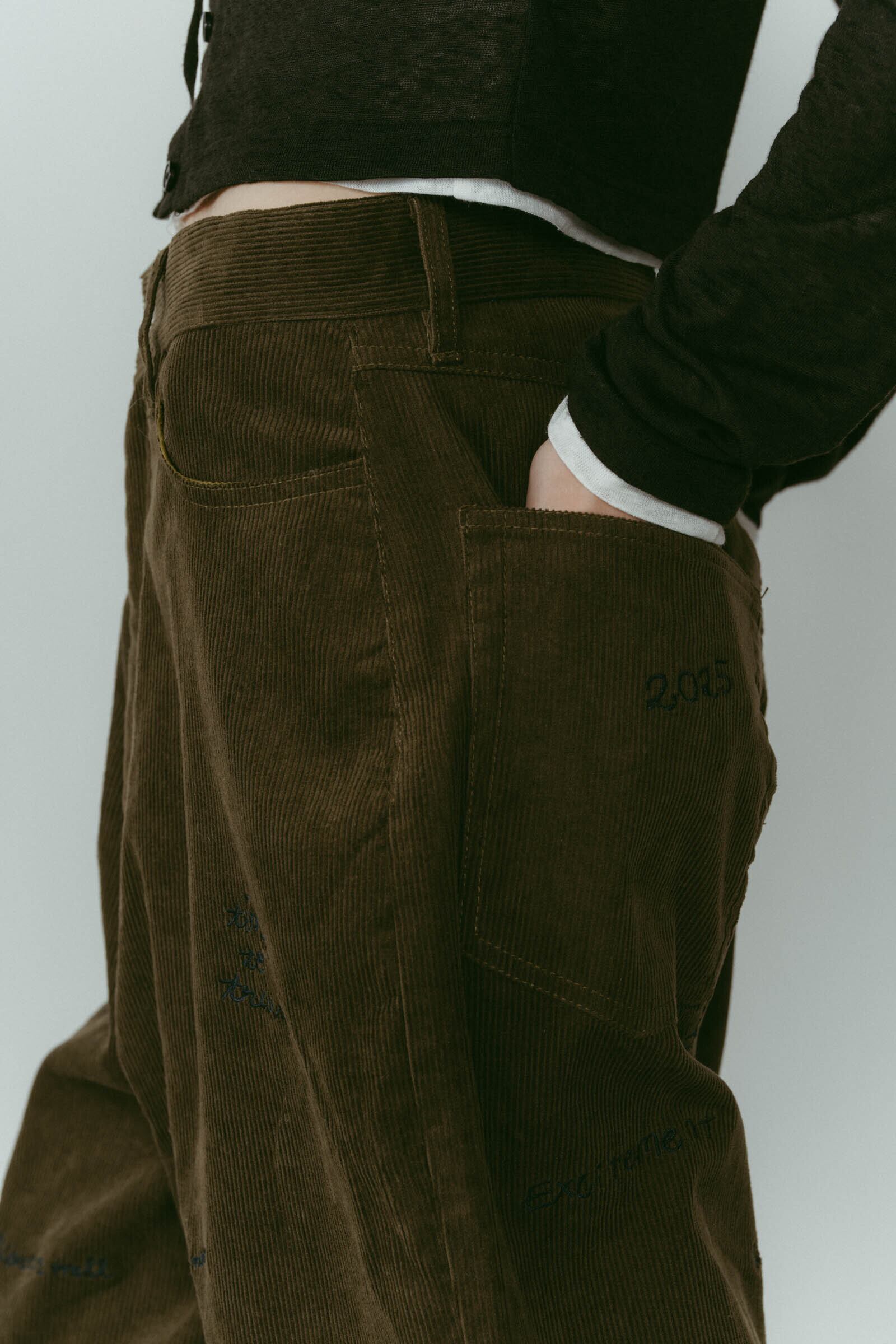 秋冬に馴染むコーデュロイ素材のパンツに、