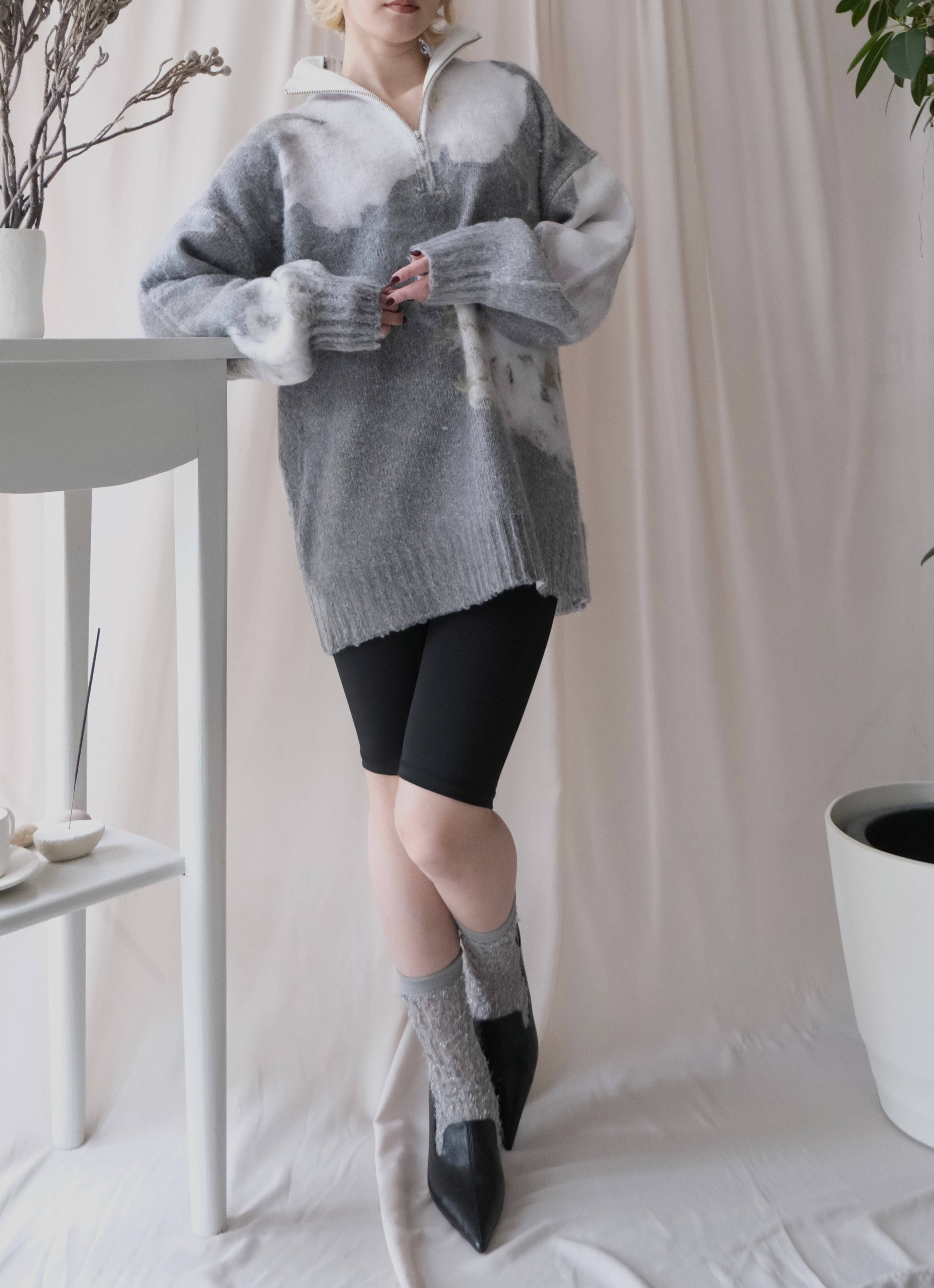 saharaデザイナー・野村が撮影した写真をインクジェットプリント+起毛加工を施したオーバーサイズニット。