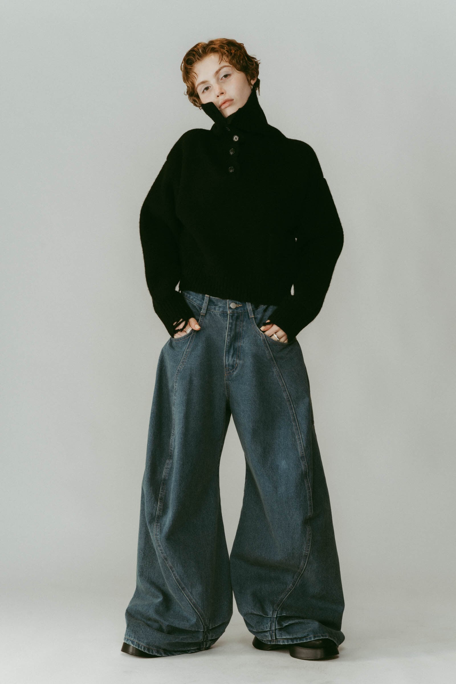 靴の上でのクッションされた時のドレープ感がクヌースマーフらしい一本です。