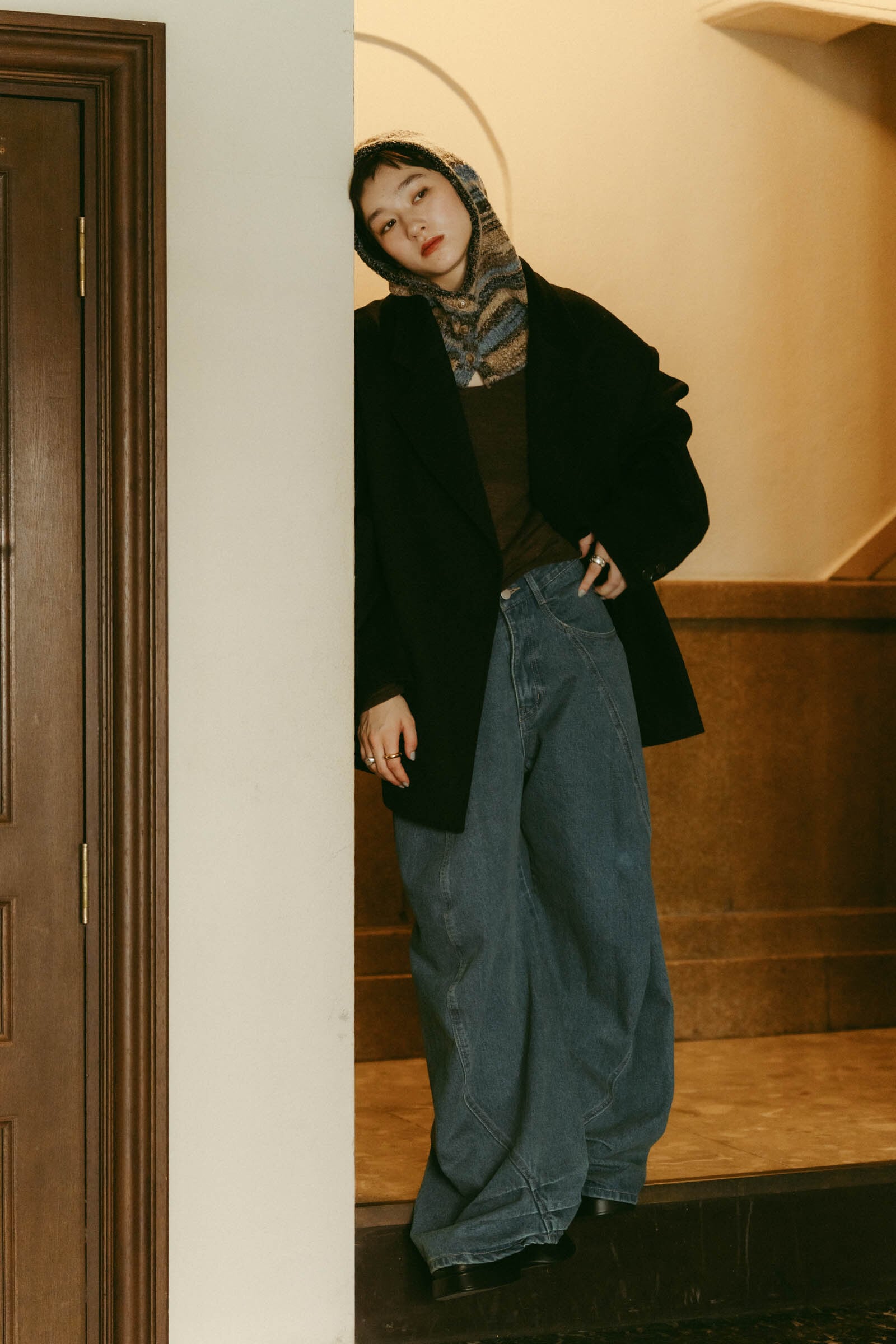 顔まわりを優しく包み込む立体的なフォルムが特徴。