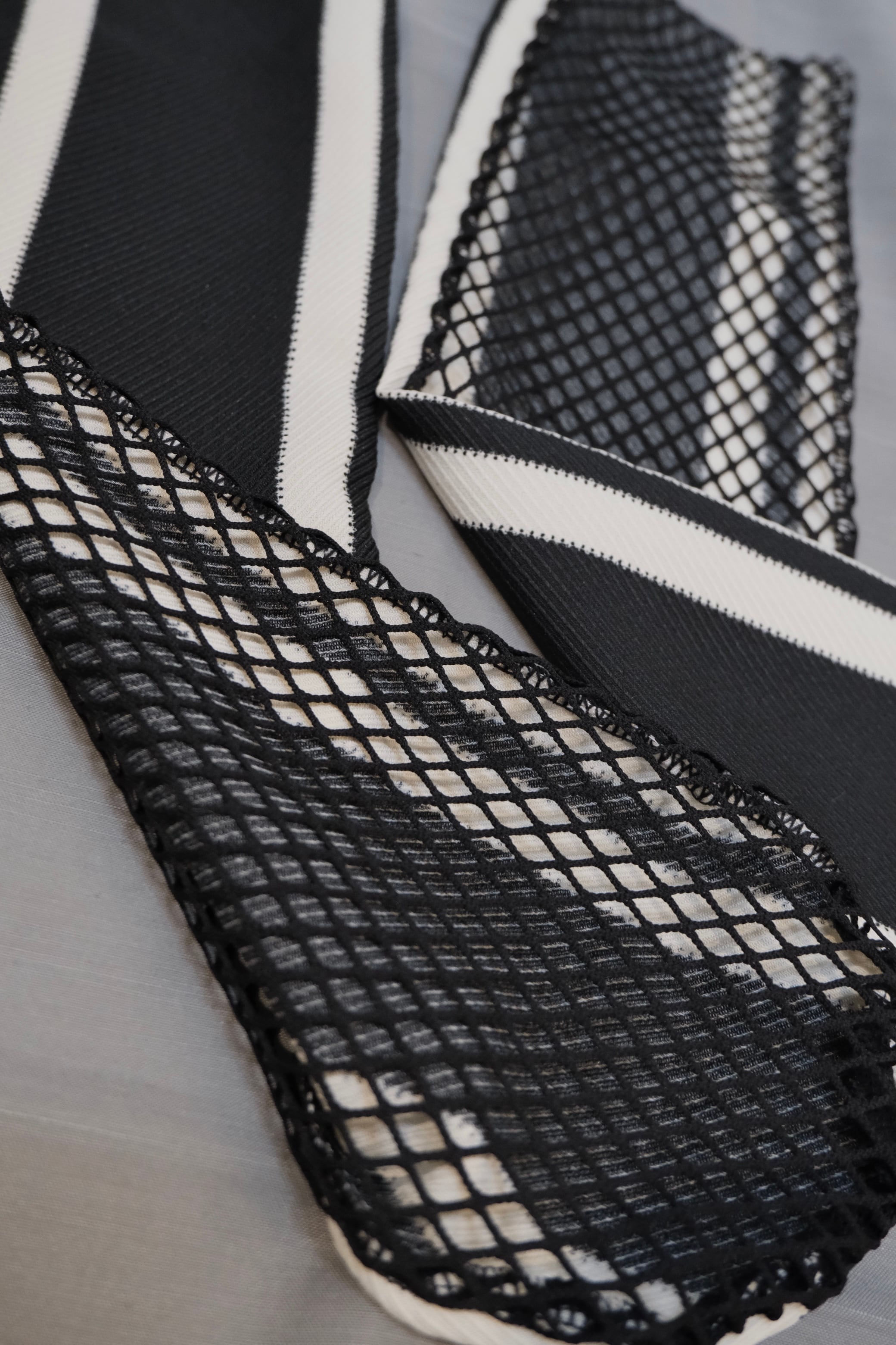 太さがランダムなストライプ生地とネットチュールを合わせたソックス。