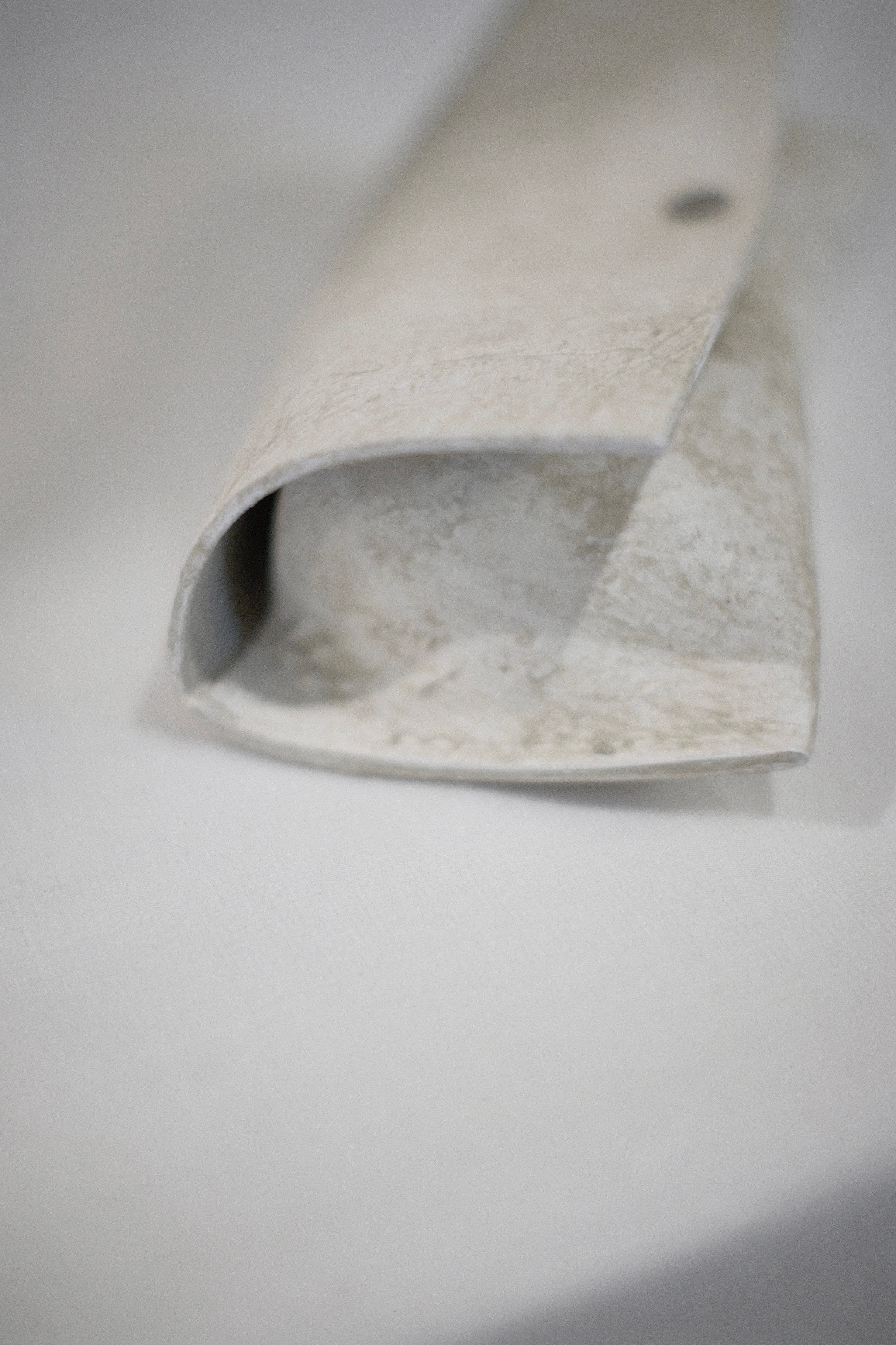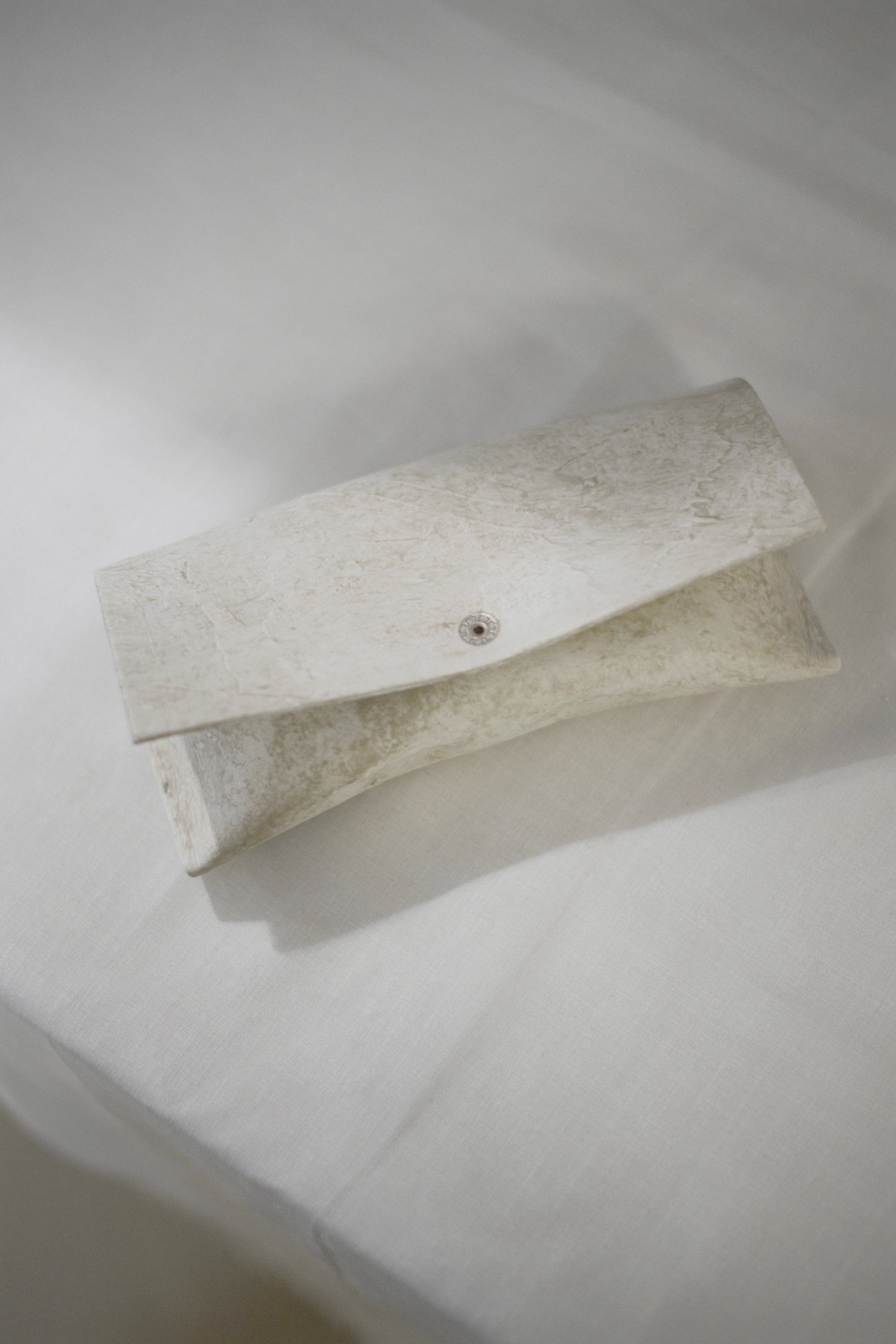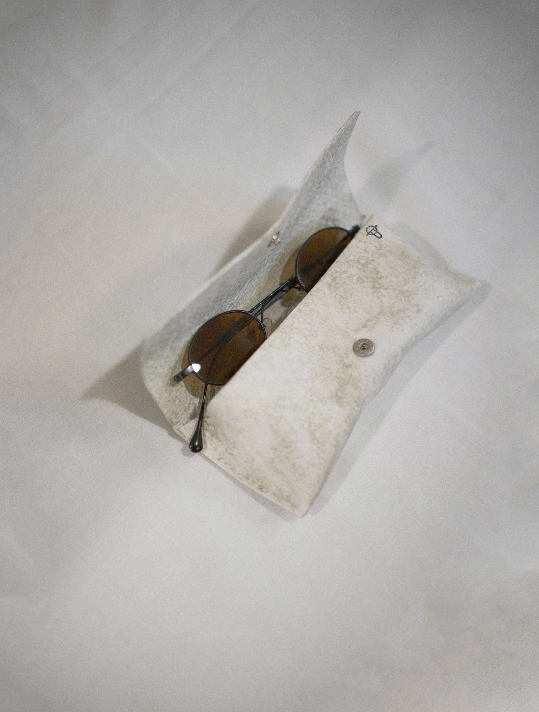 本革の上に建築材のパテを施し、壁の質感を再現したセミハードケース。