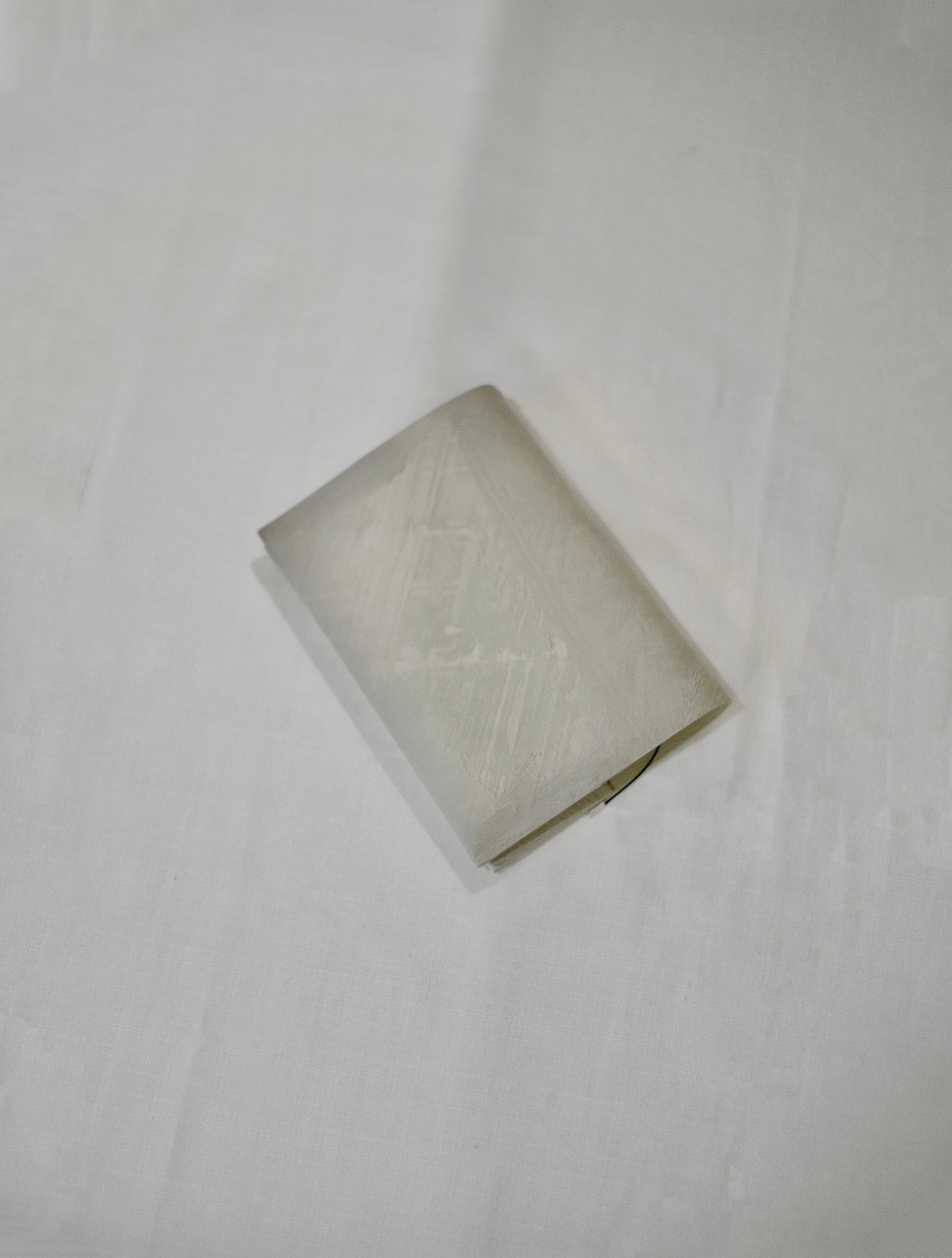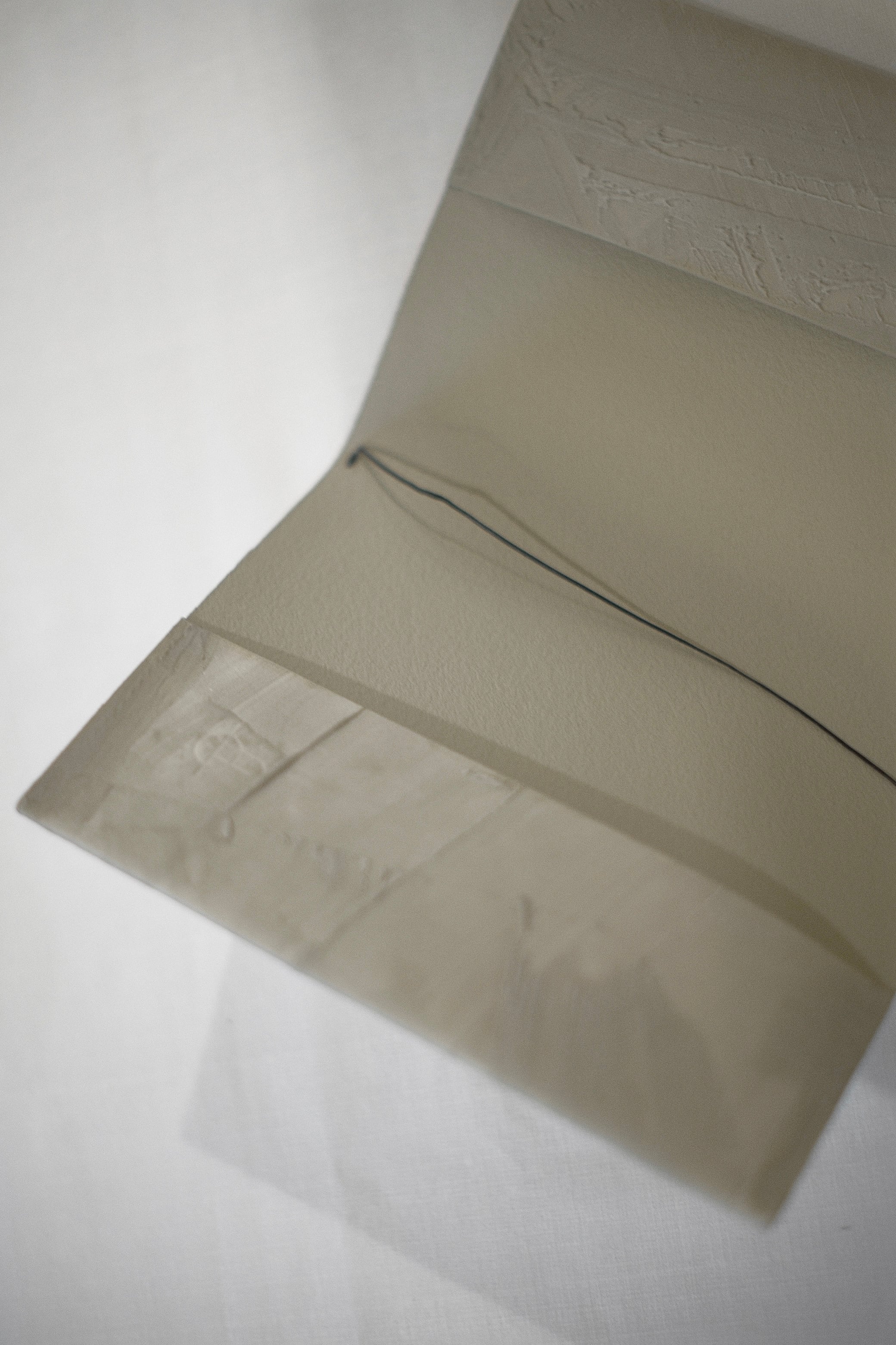 本革の上に建築材のパテを施し、壁の質感を再現したブックカバー。