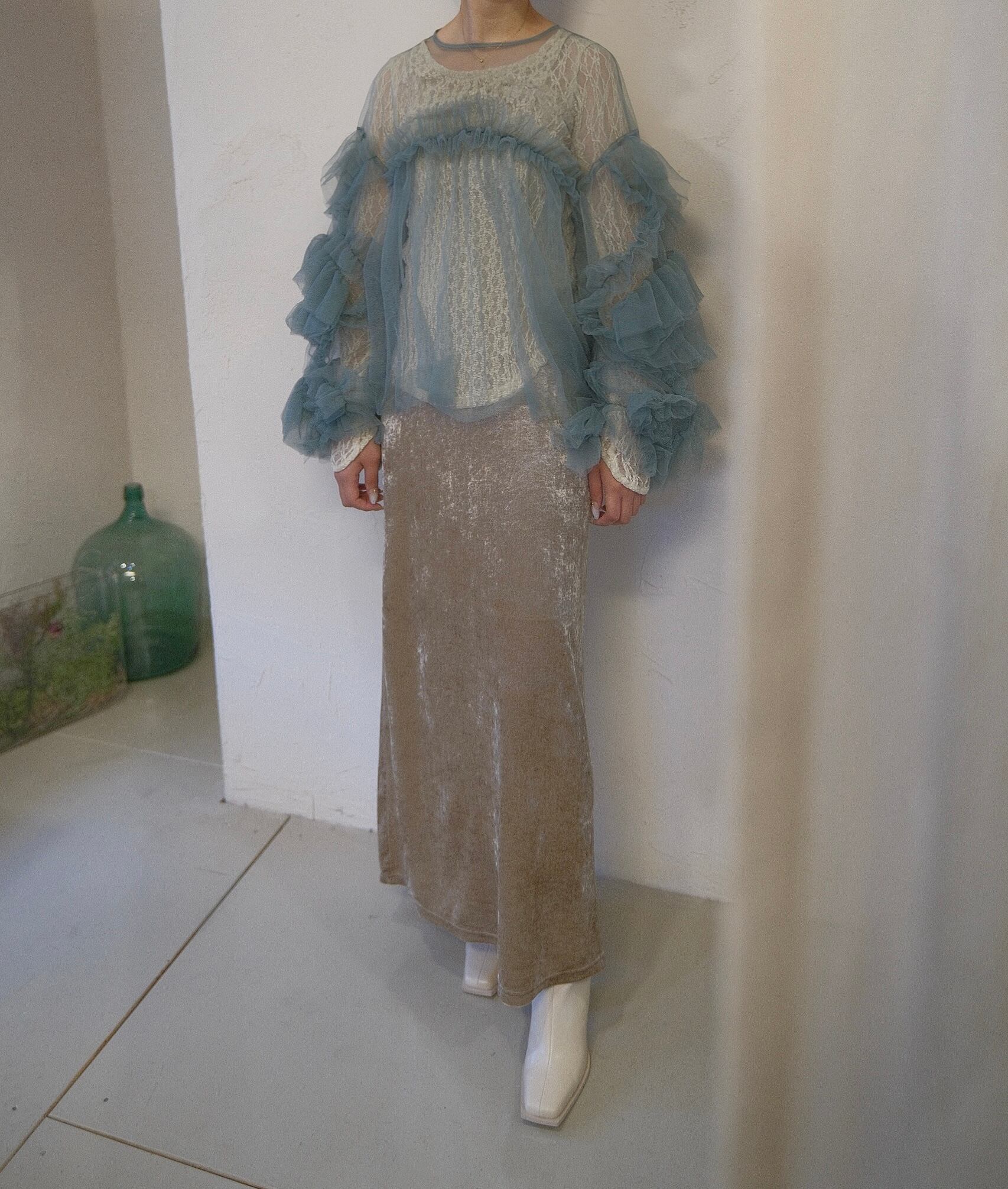ボリューム感のあるフリルが目を惹く、チュールトップス。