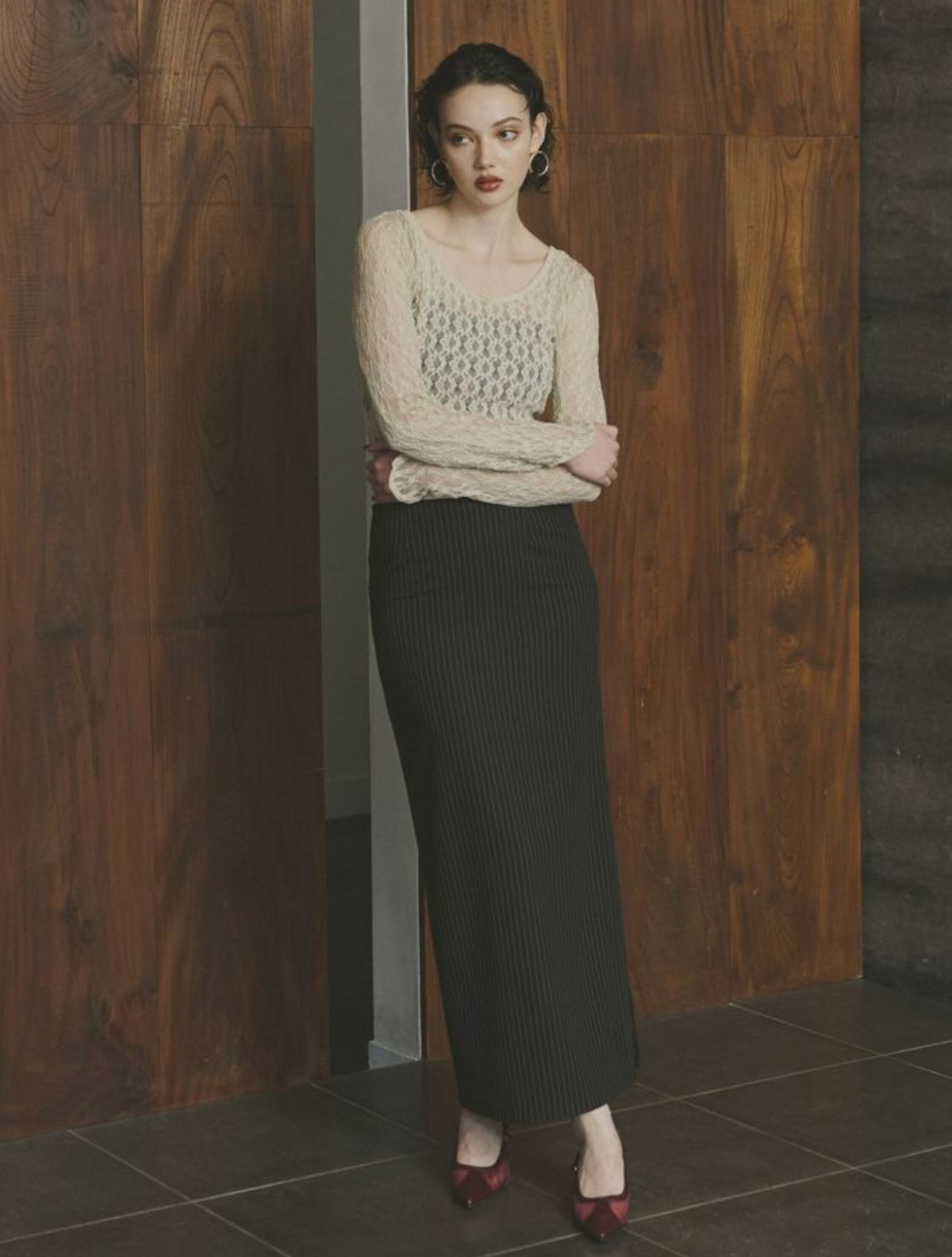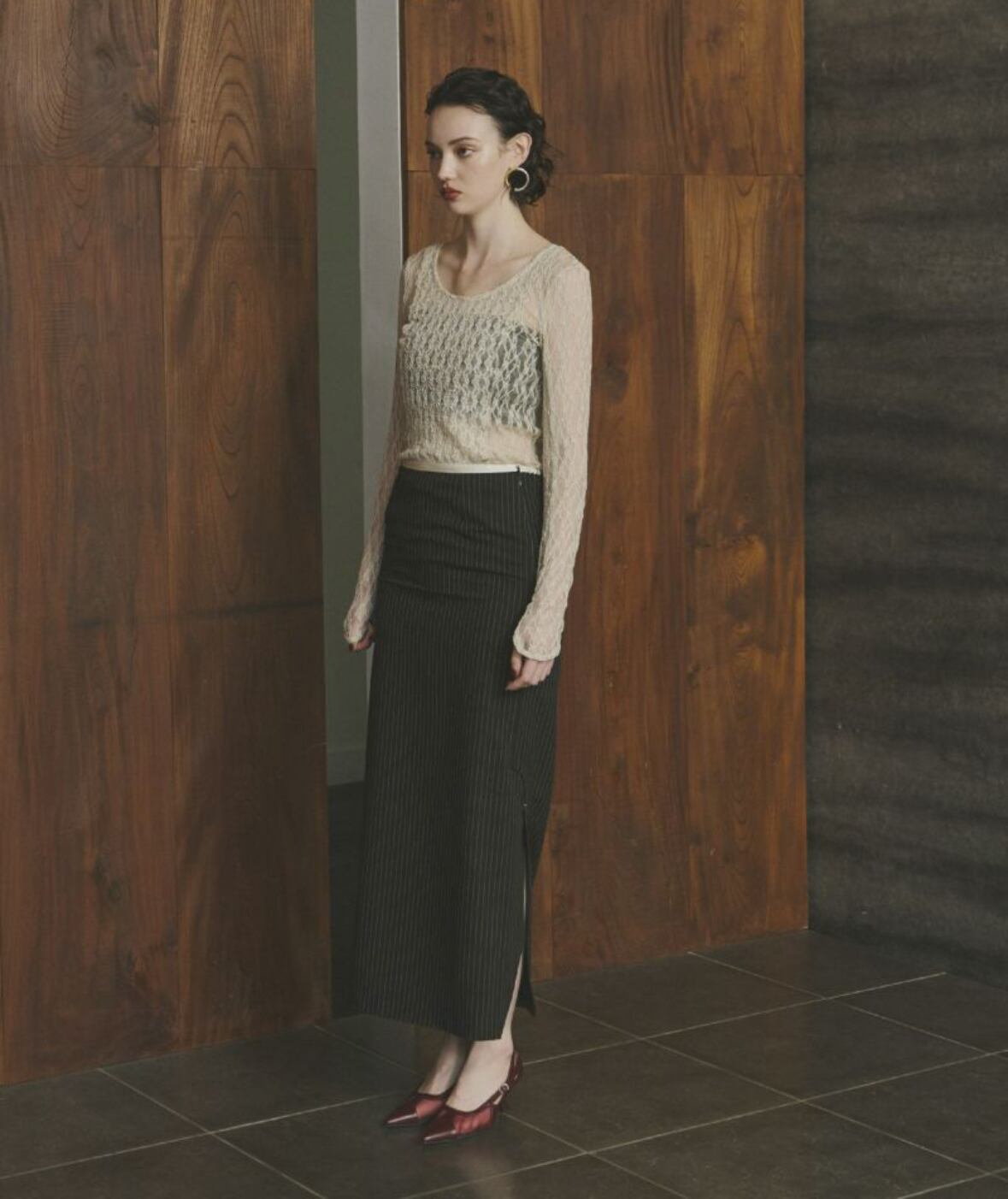 バックスタイルにはスリットを入れて抜け感をプラスしているため、1枚で着てもさまになります。