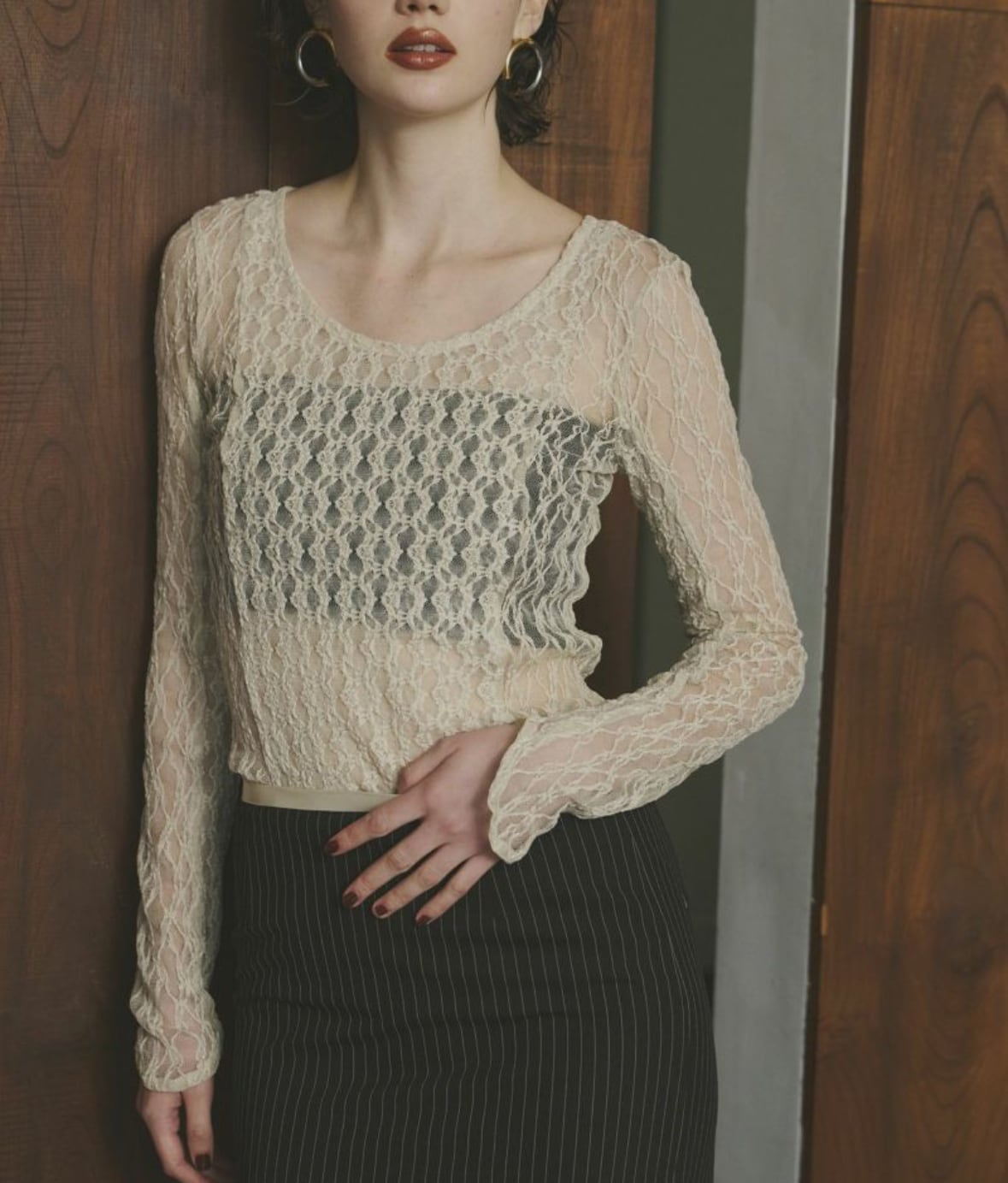 Blocking Lace Inner / BEIGE