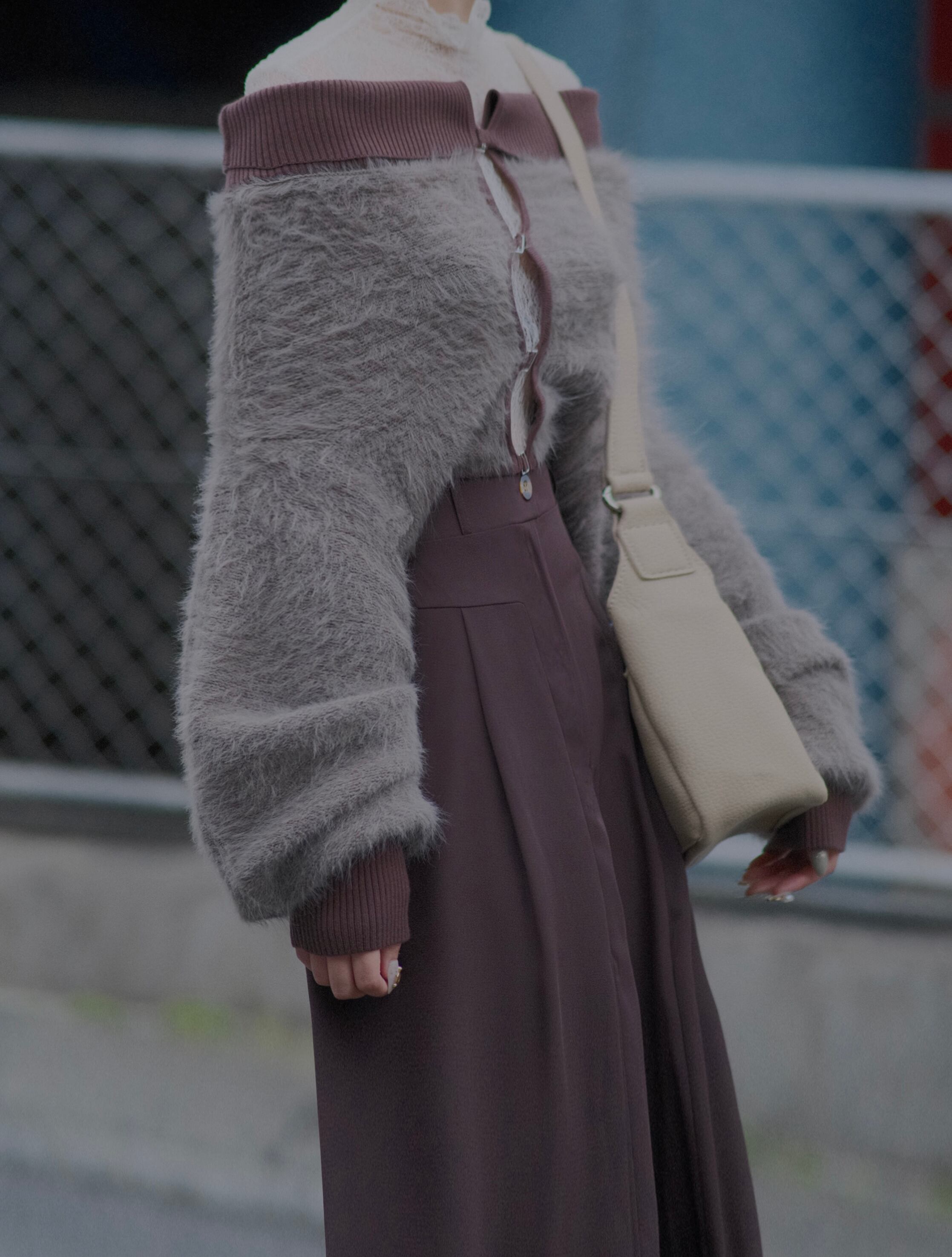 ニット素材と組み合わせたデザインは一枚で、雰囲気のあるアイテムです。