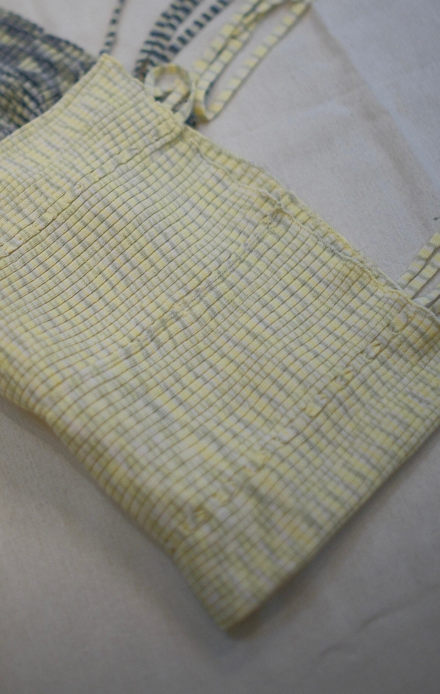 前後肩から繋がっている紐はシャーリング具合でアレンジが楽しめるドローストリング仕様です。