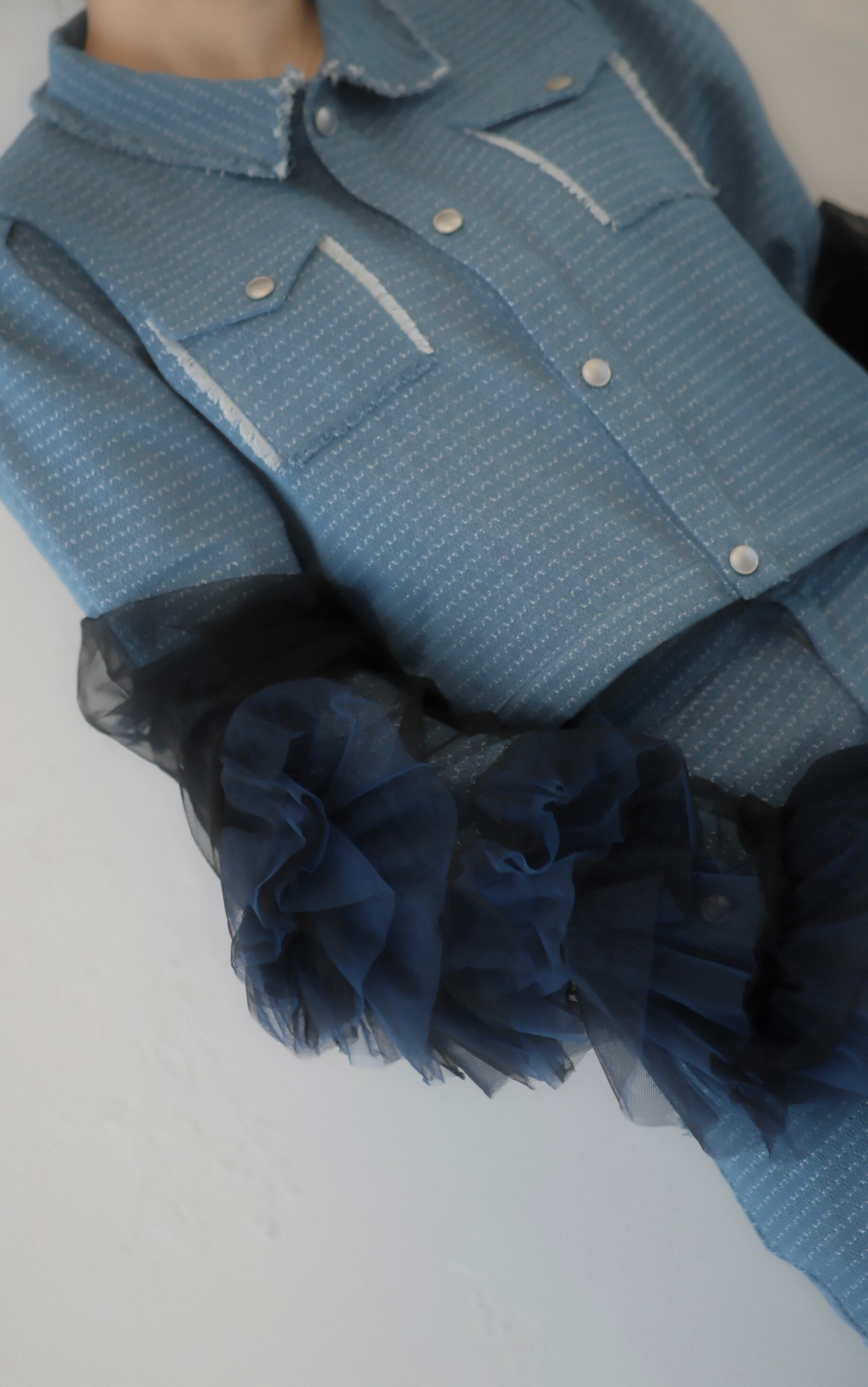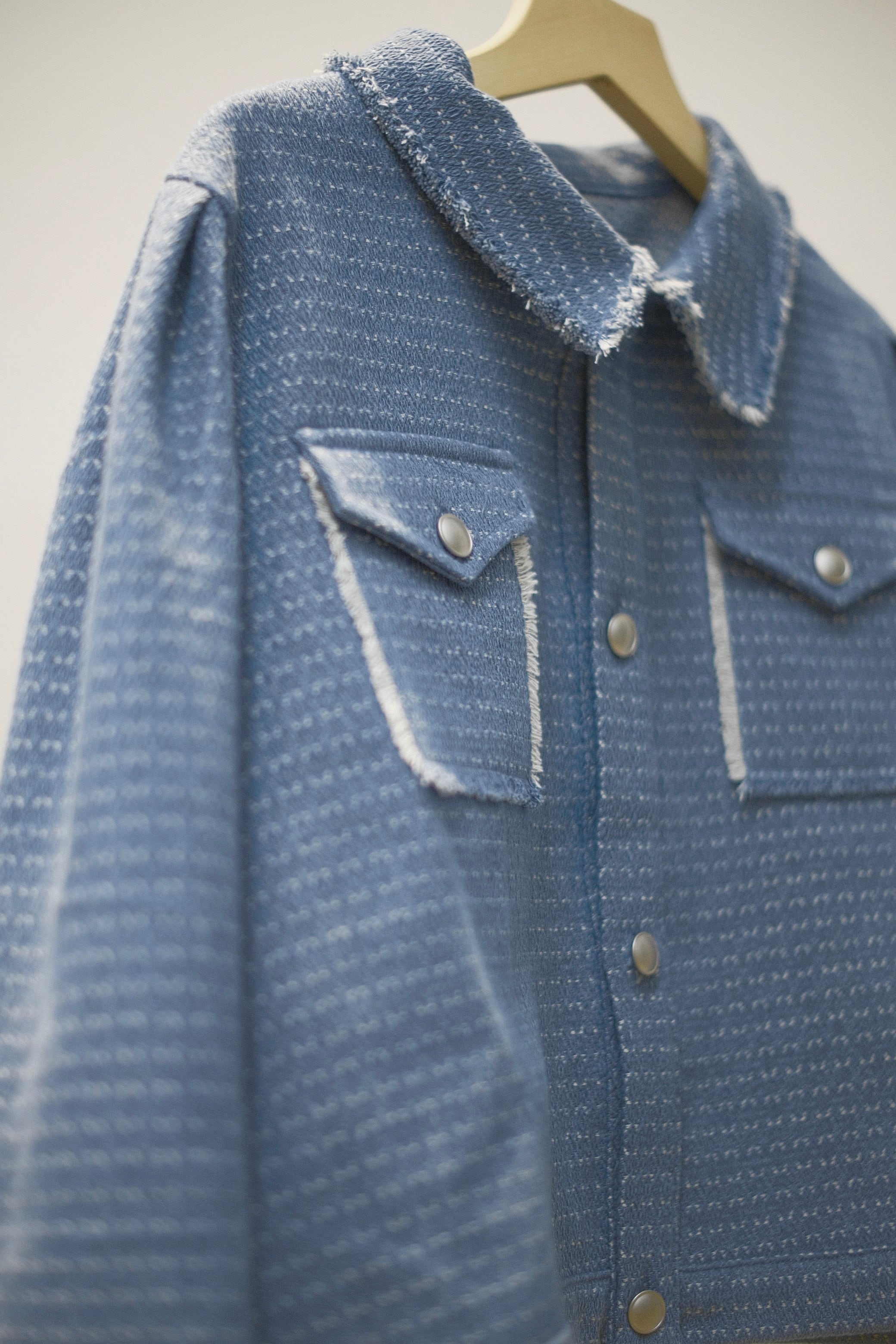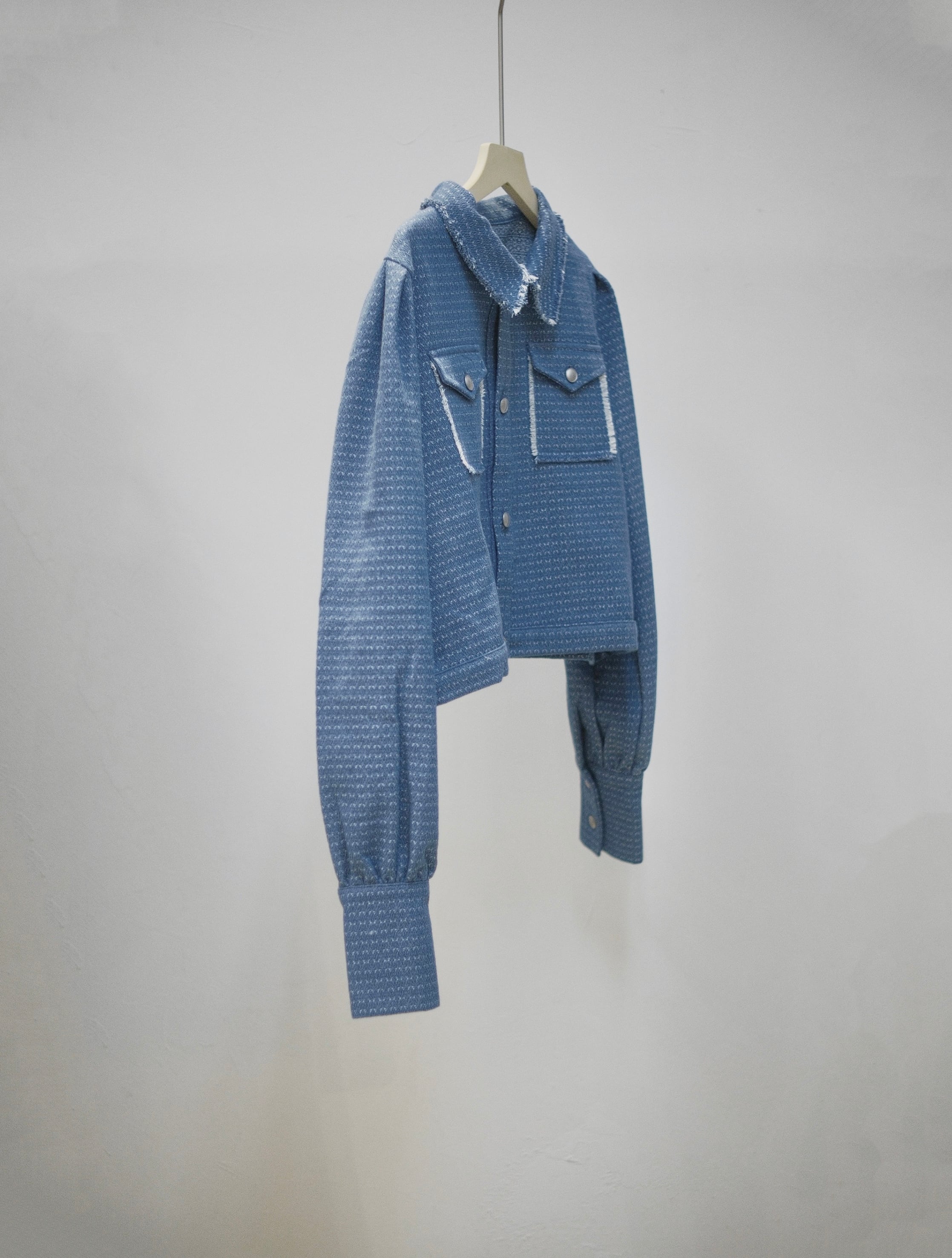 繊細な織り柄が魅力的なデニムジャケット。