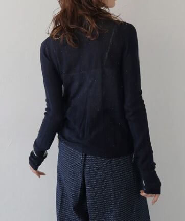 スパンコールのシアーニットシャツ。
