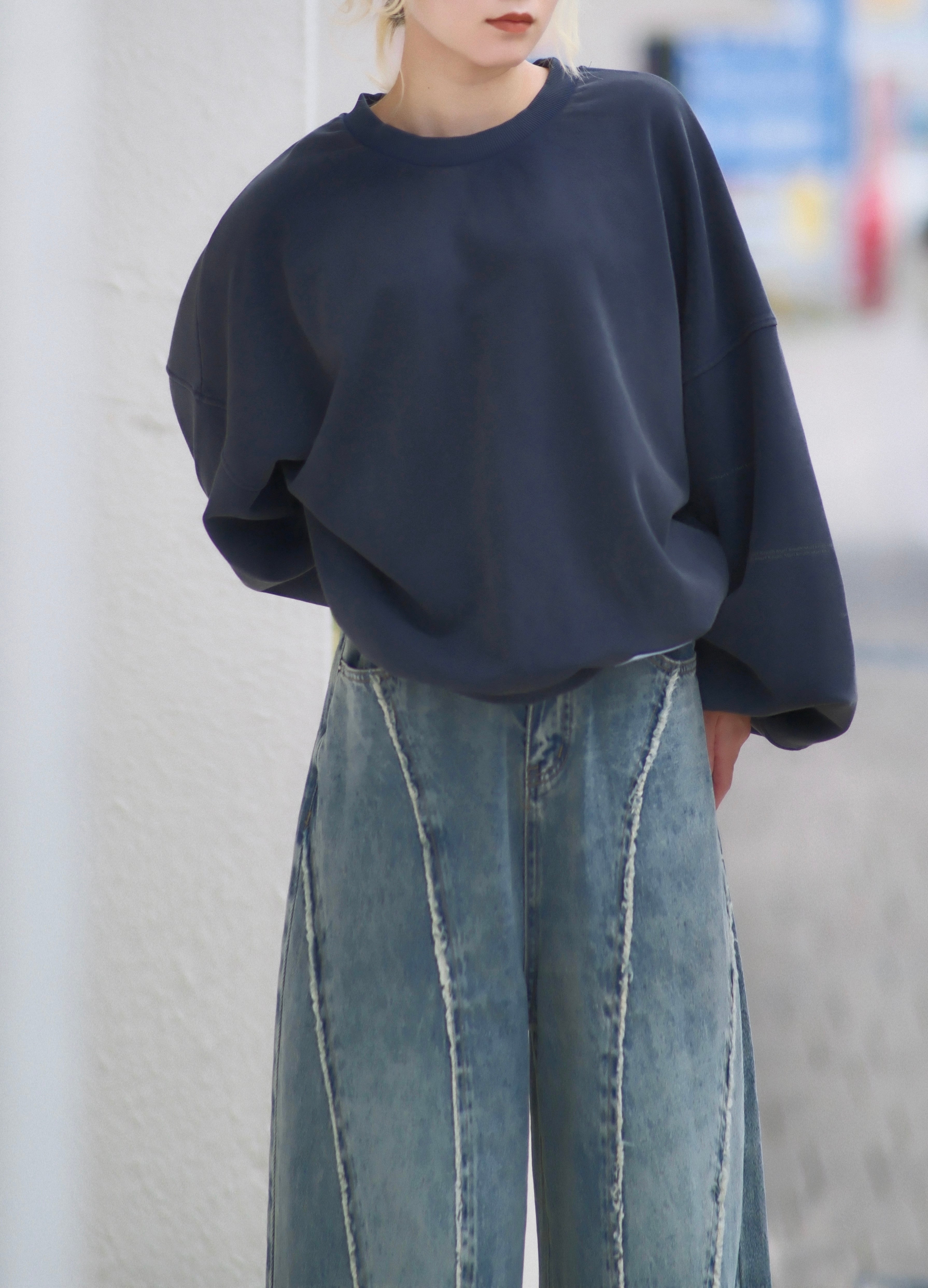 男女兼用で着用できるオーバーサイズのスウェット。
