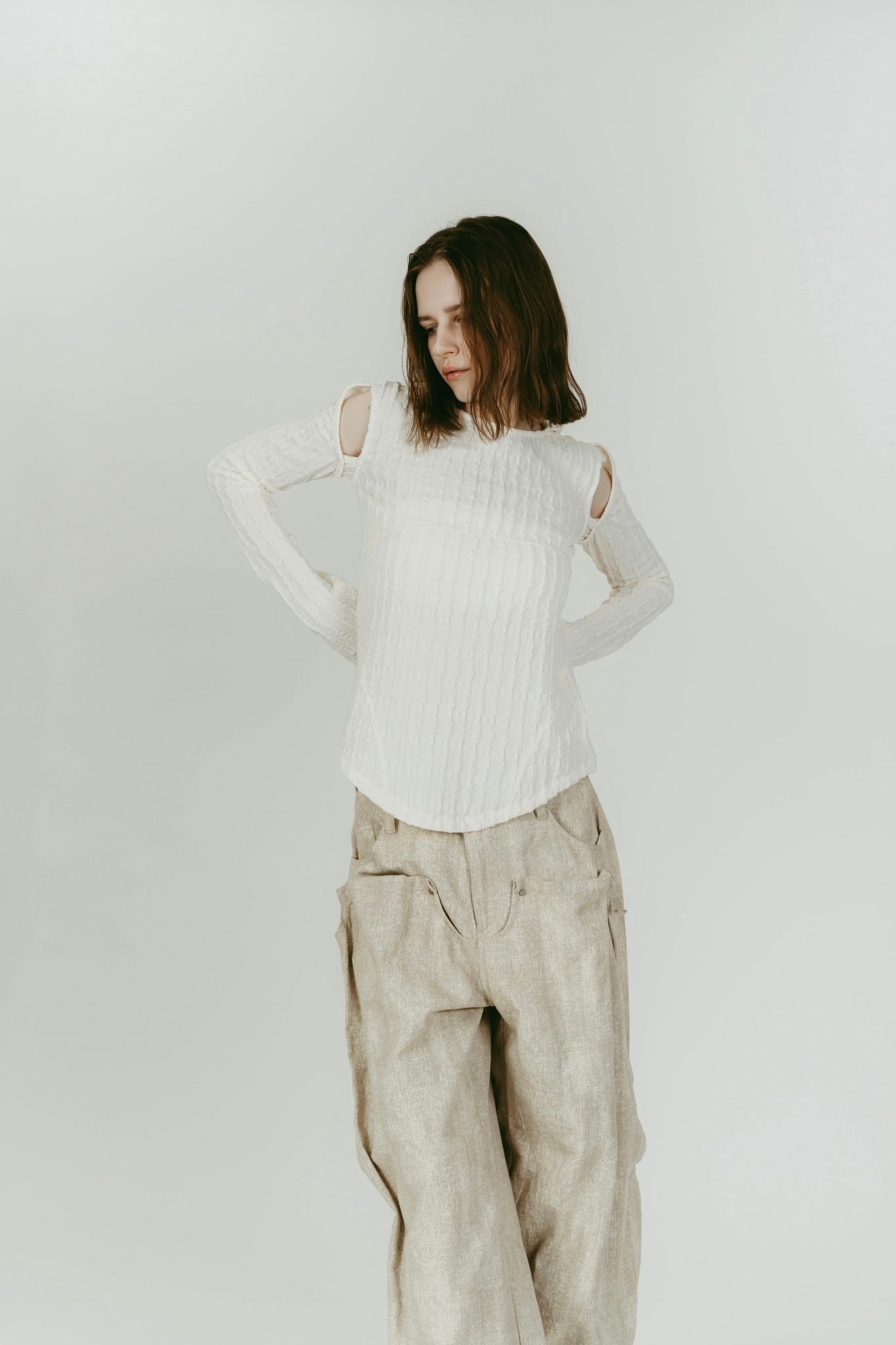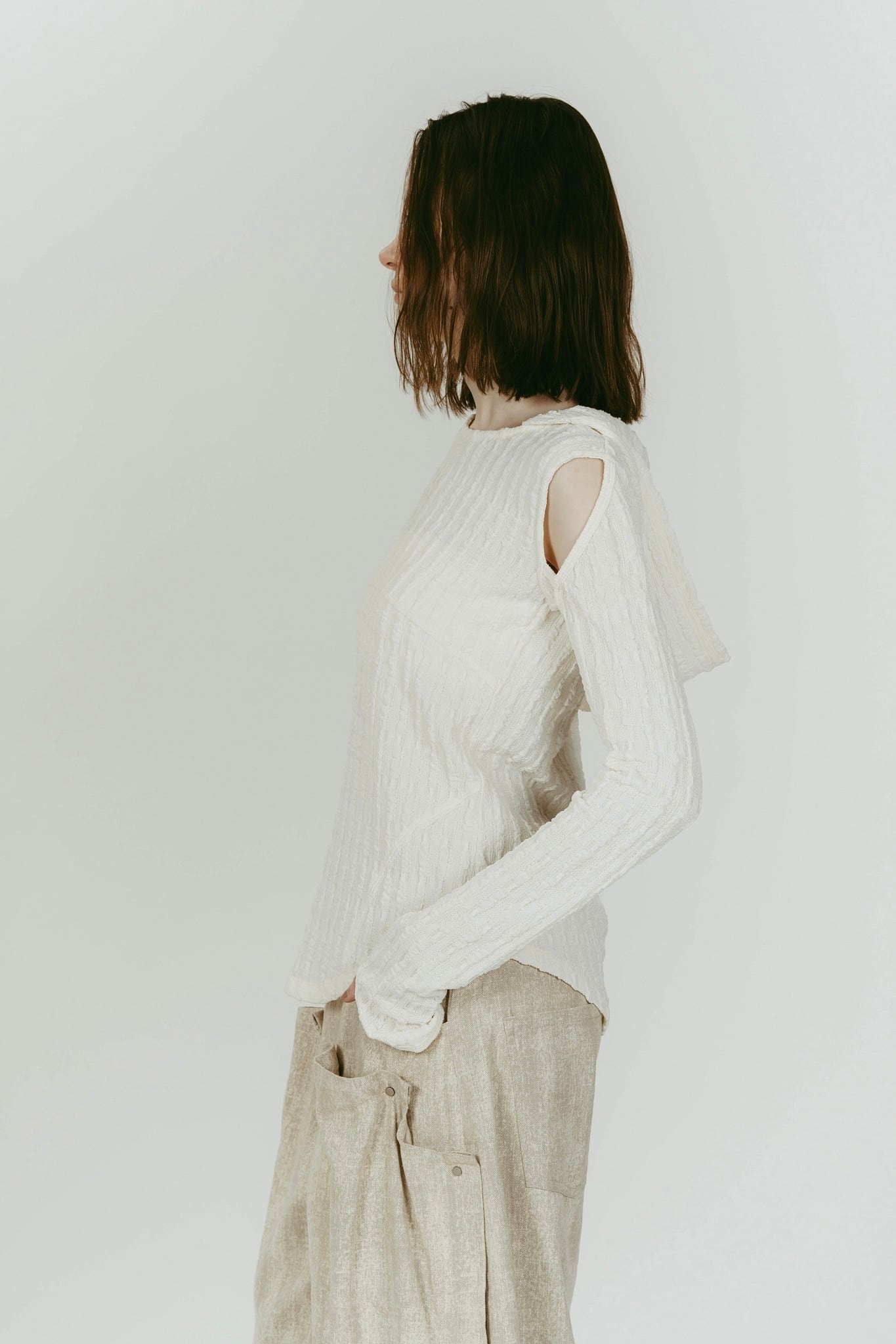 肩周りが華奢見えが狙えるよう計算されたスリットラインと