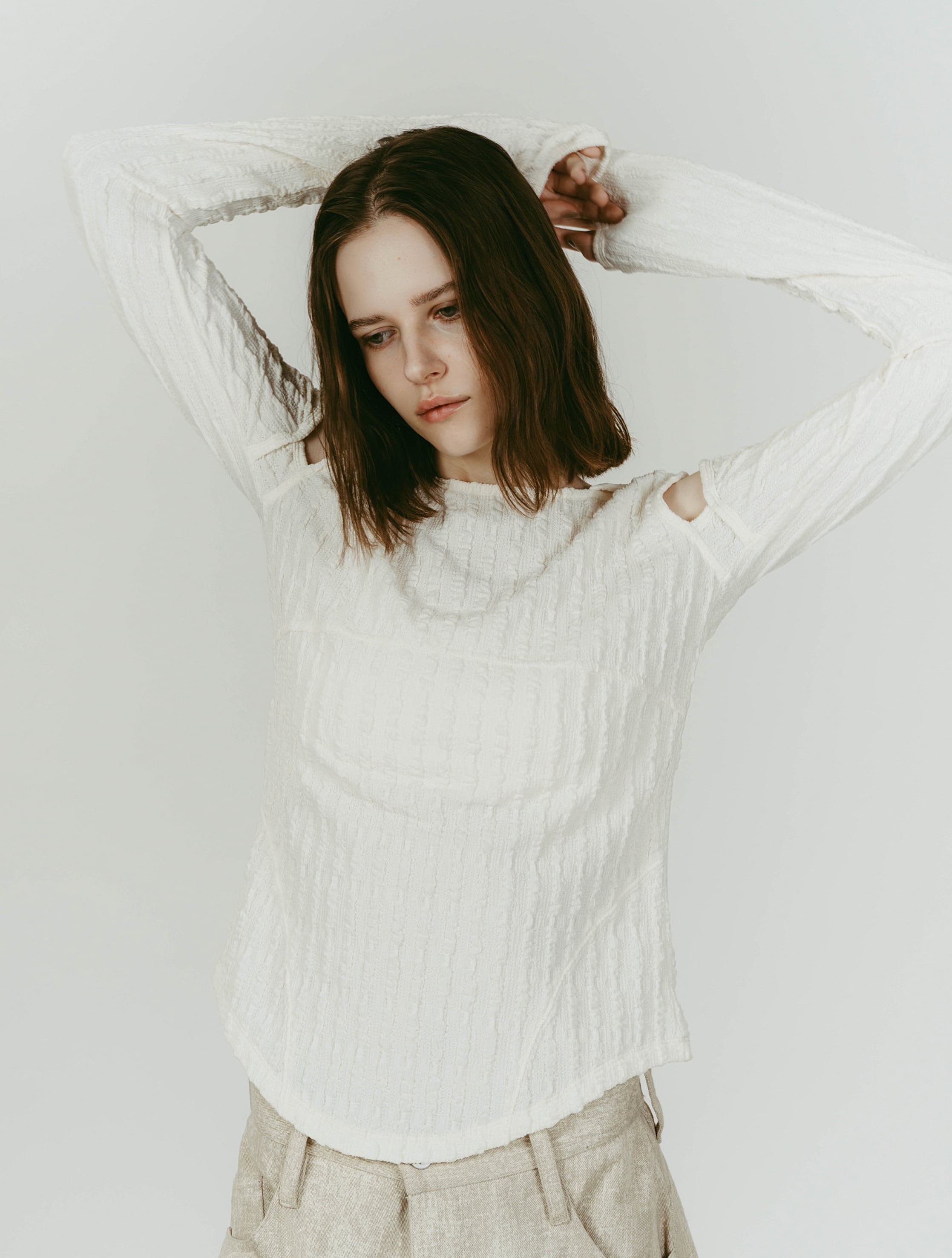Hooded Jacquard Top / WHITE