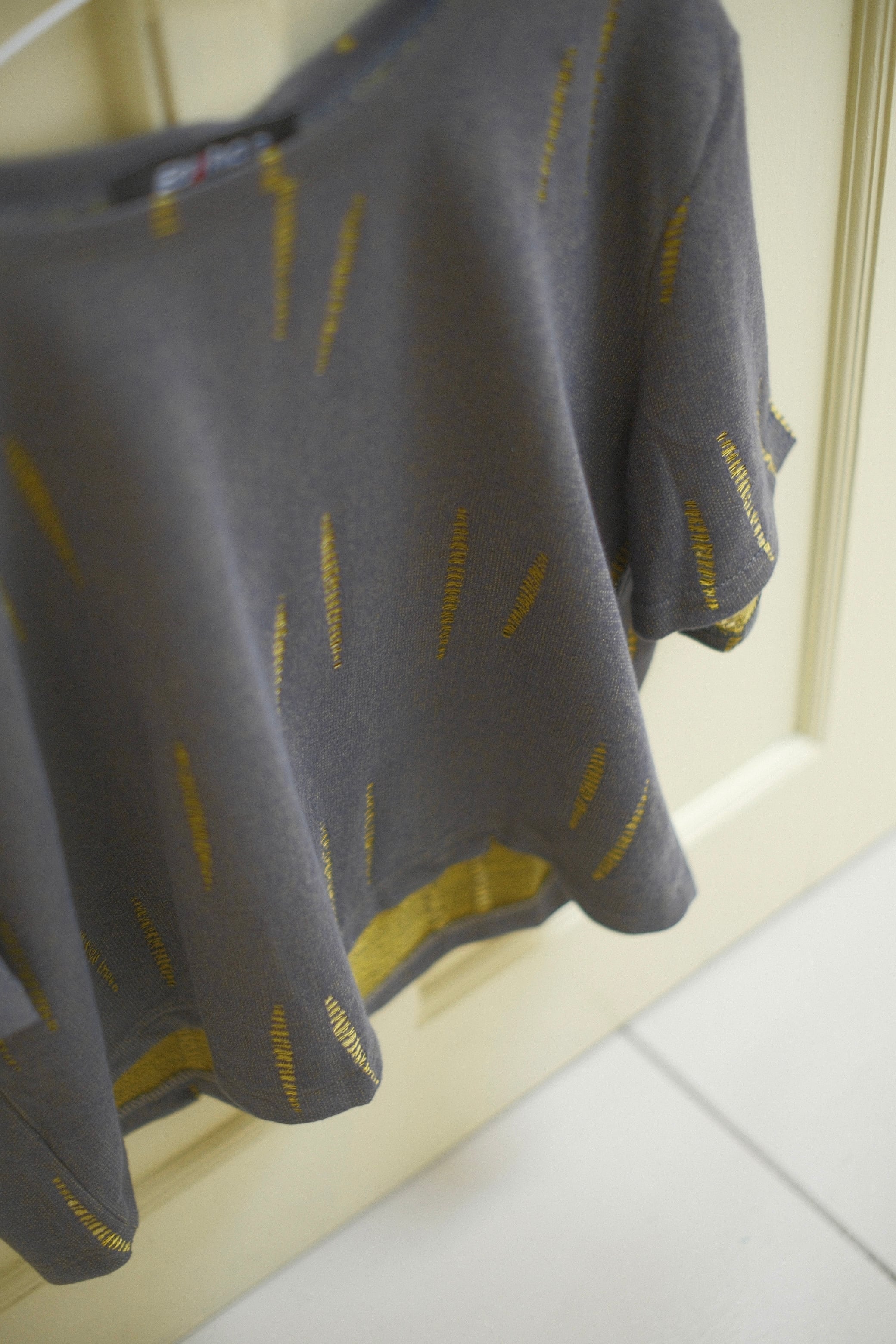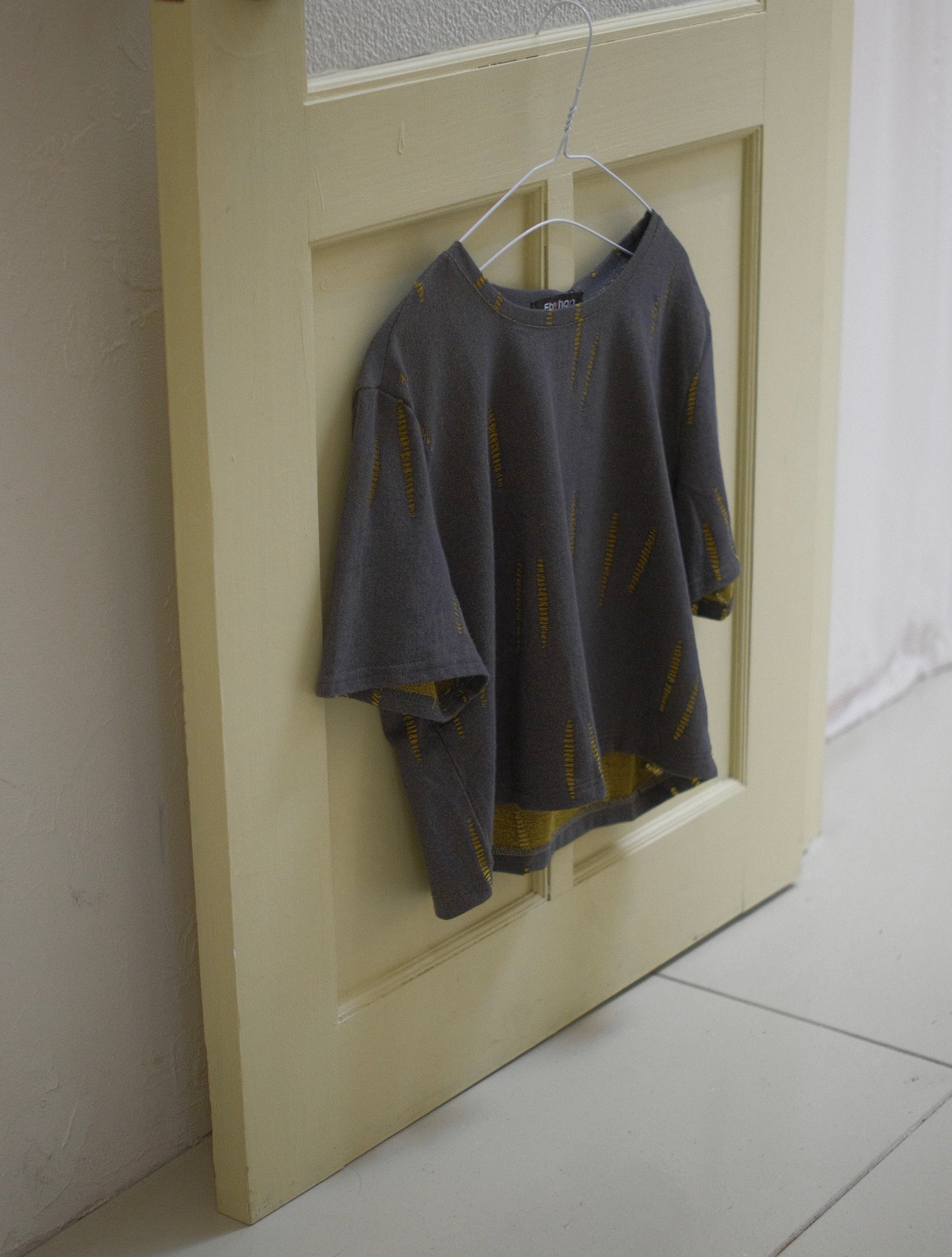 Slash Jacquard Boxy T-shirt 26 / BLACK × YELLOW