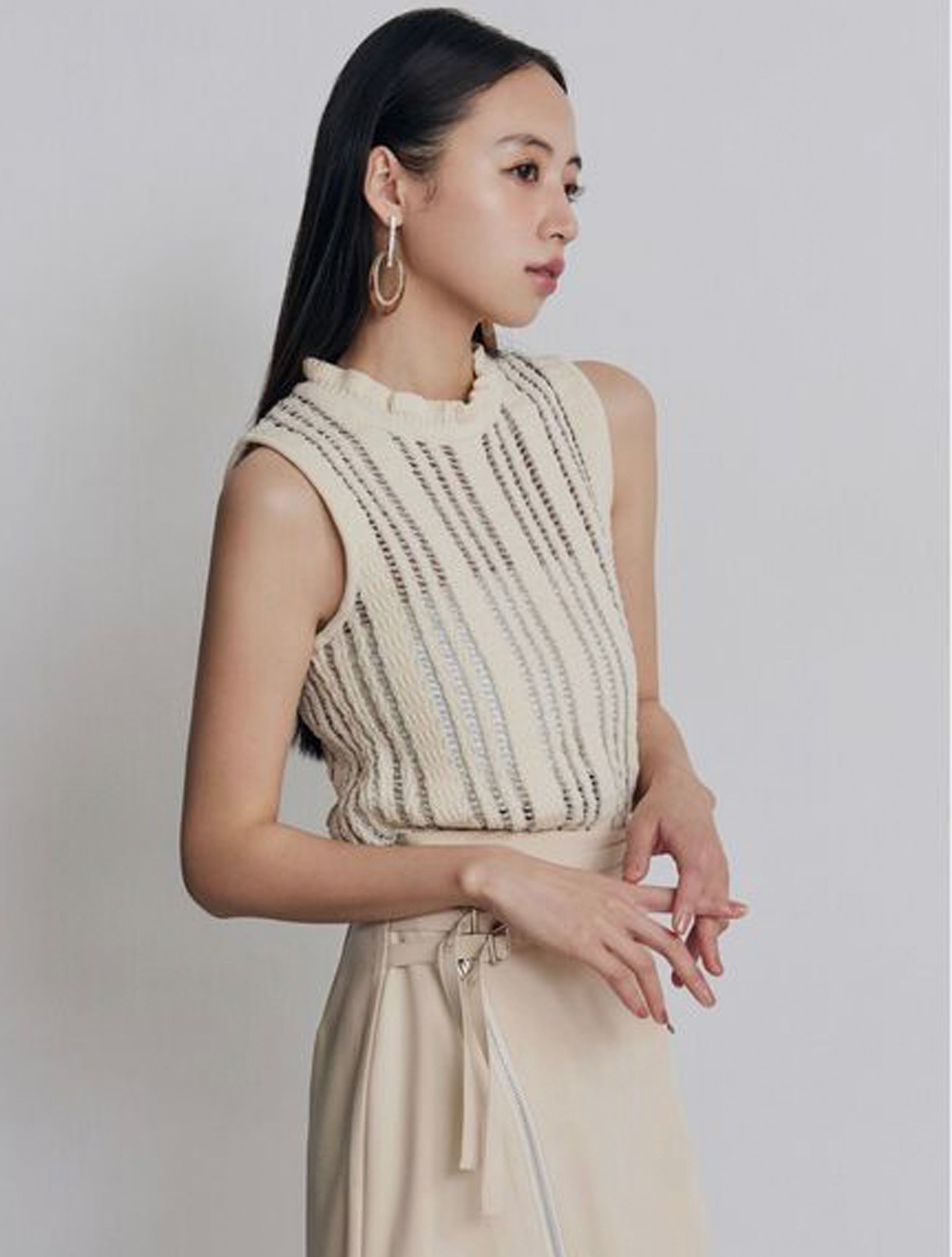 キャッチーなラメ糸使用のニットタンク。