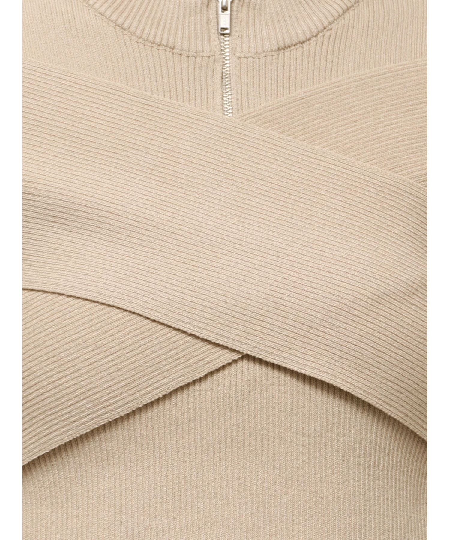 Zip Front Cache Coeur Half Sleeve Knit / BEIGE