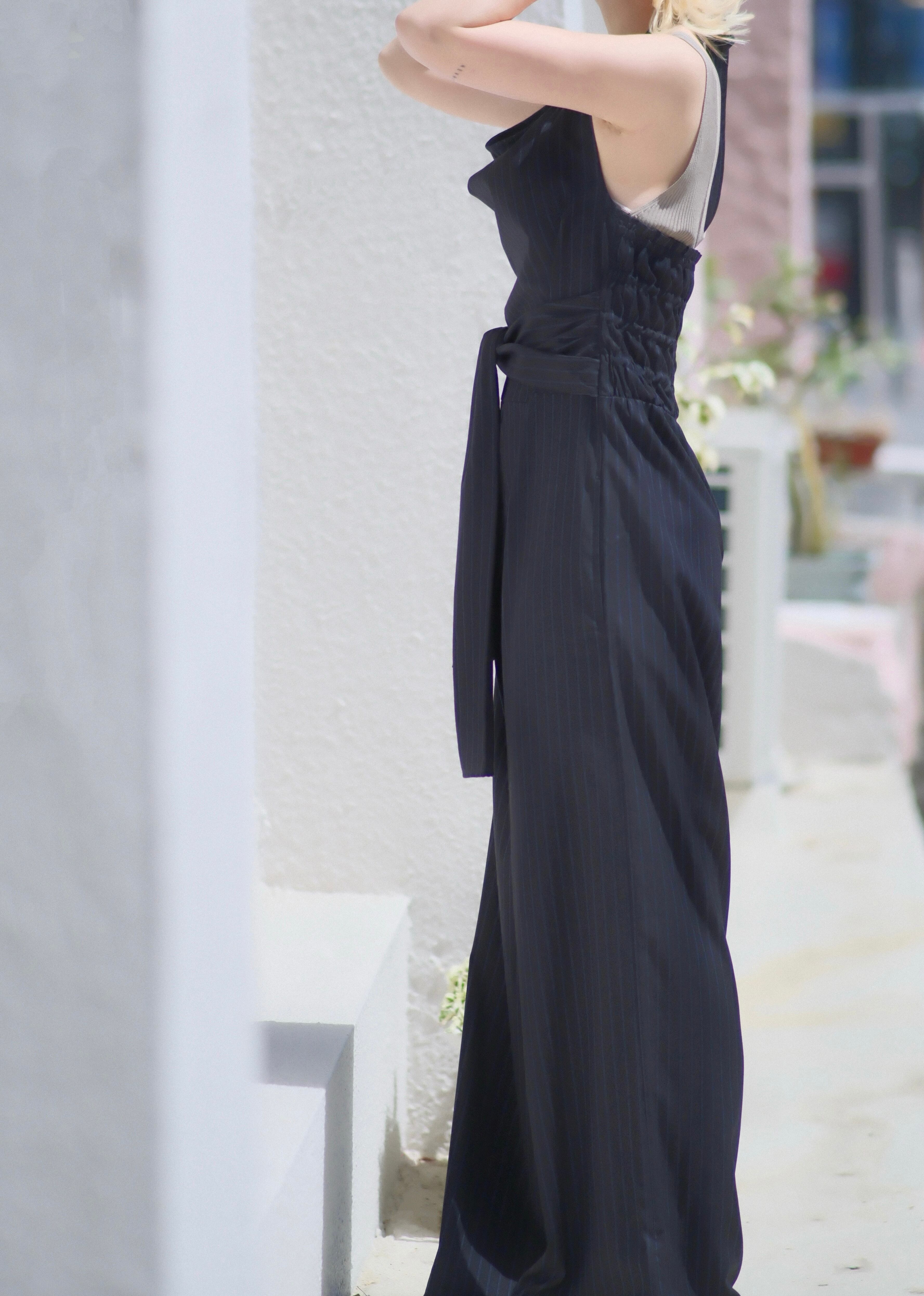 ウエストに施されたラップディテールは、