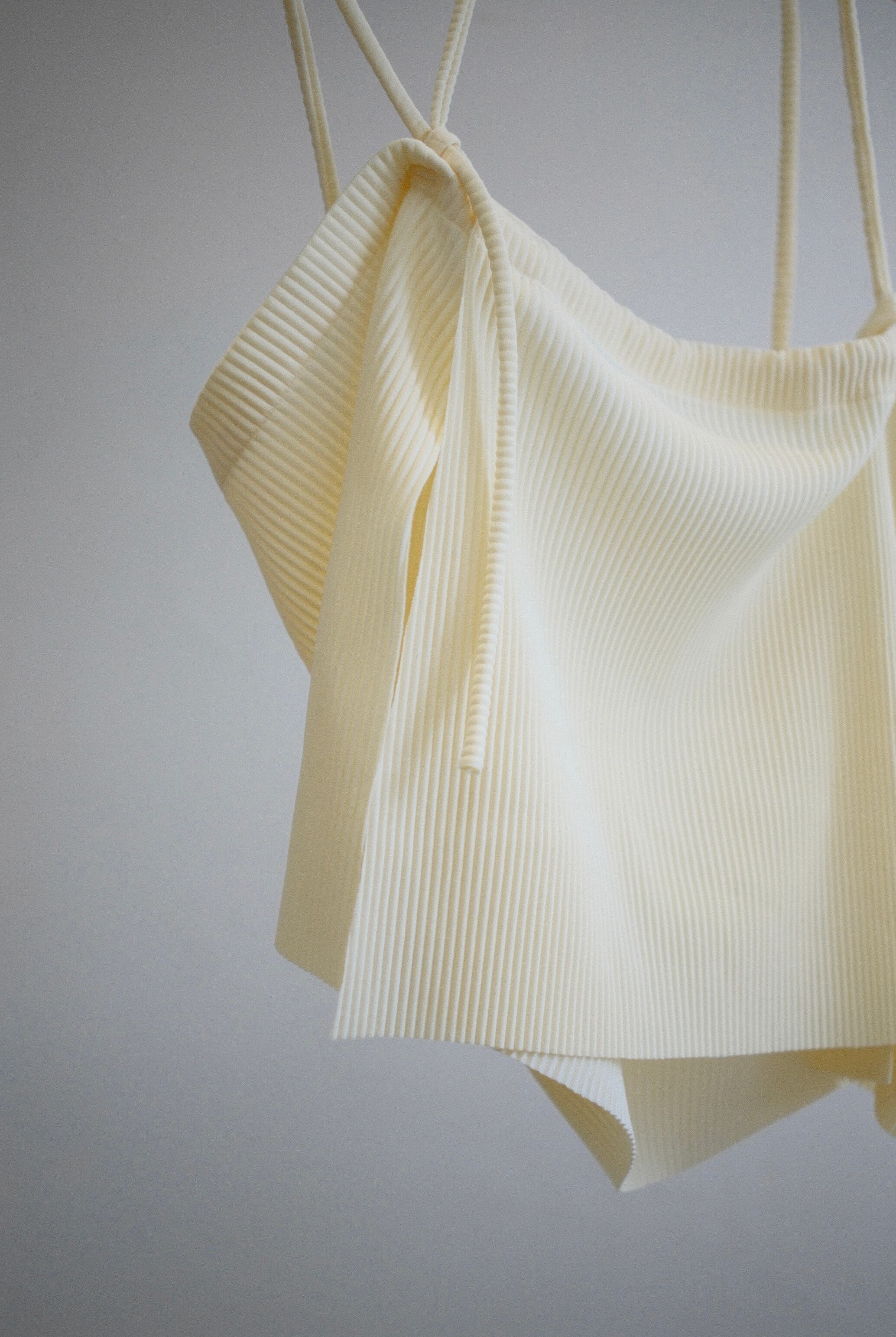 オフショルとして合わせたり、腰に巻いてパーツアイテムとして取り入れたり、紐をアレンジした着方も可能です。