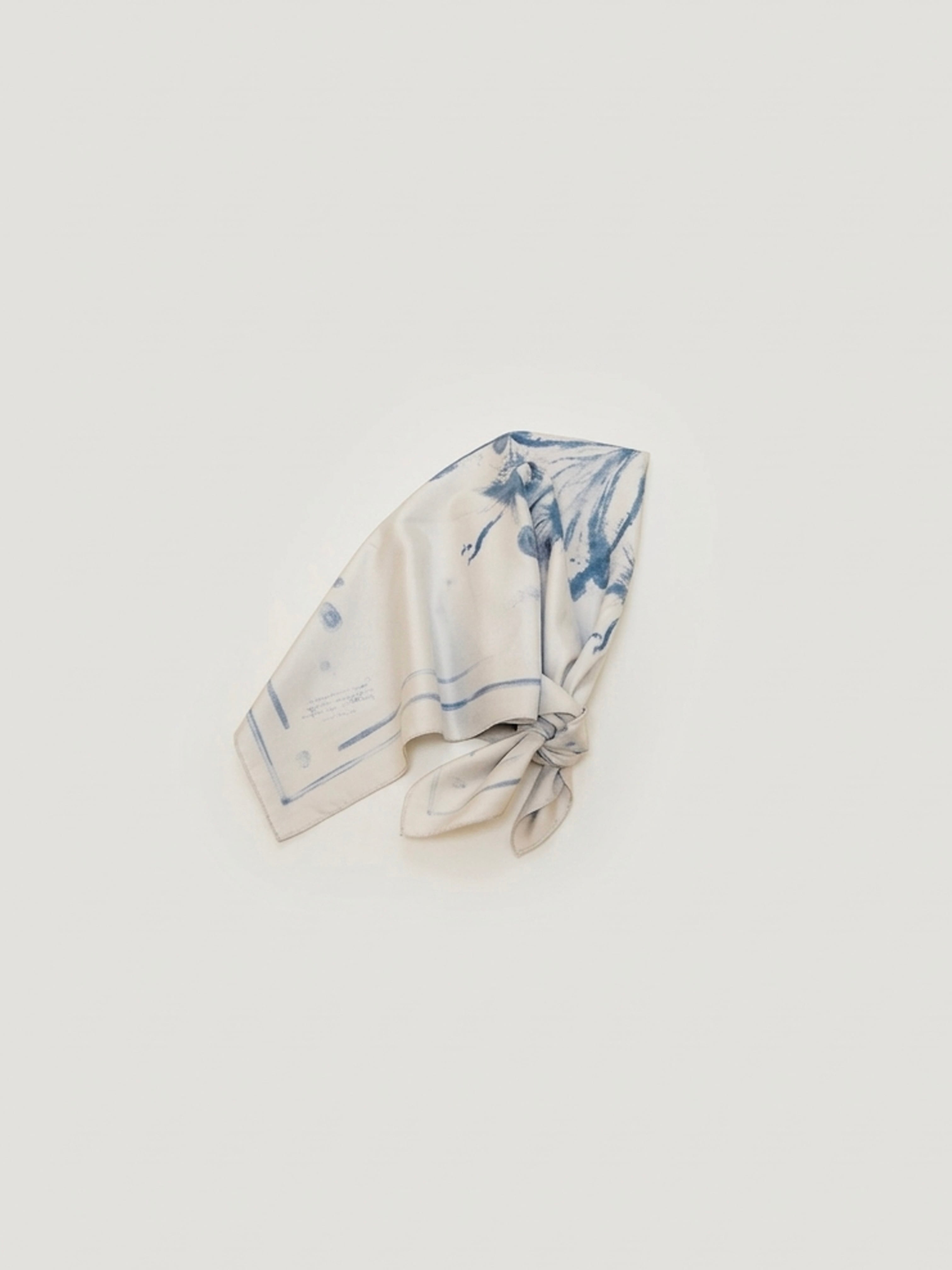 植物モチーフのオリジナルグラフィックを取り入れたスカーフ。