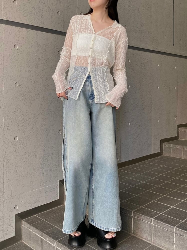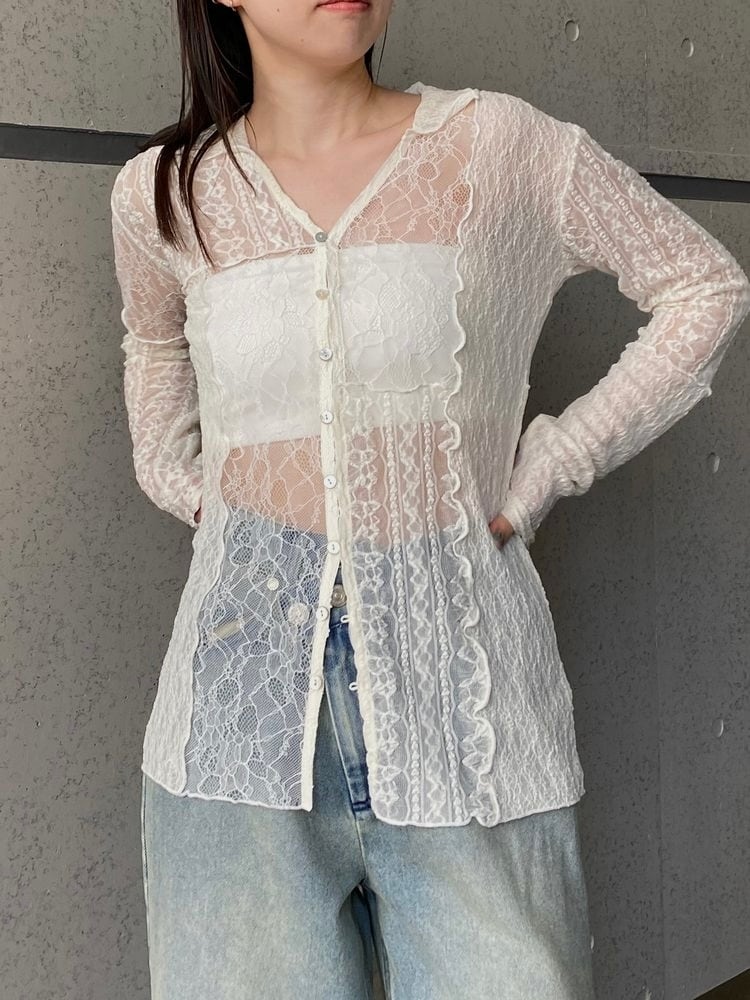 3種類の繊細なレースをパッチワークのように組み合わせた表情豊かなカーデトップス。